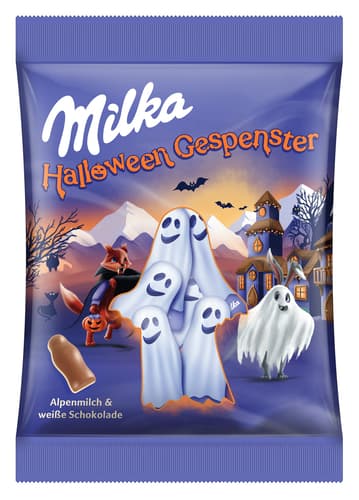 Milka Halloweeni alpesi tej- és fehércsokoládés, szellem alakú figurák