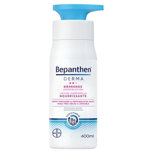 Bepanthen Derma Nourishing Body Lotion is ideal for daily care of very dry and sensitive skin. This 400 ml lotion immediately relieves dry skin symptoms, soothing and providing long-lasting hydration for up to 48 hours. Thanks to its special nourishing-regenerating complex with provitamin B5, it's gentle on skin flora, absorbs quickly, and is clinically tested for effectiveness. Experience comfort for your skin!