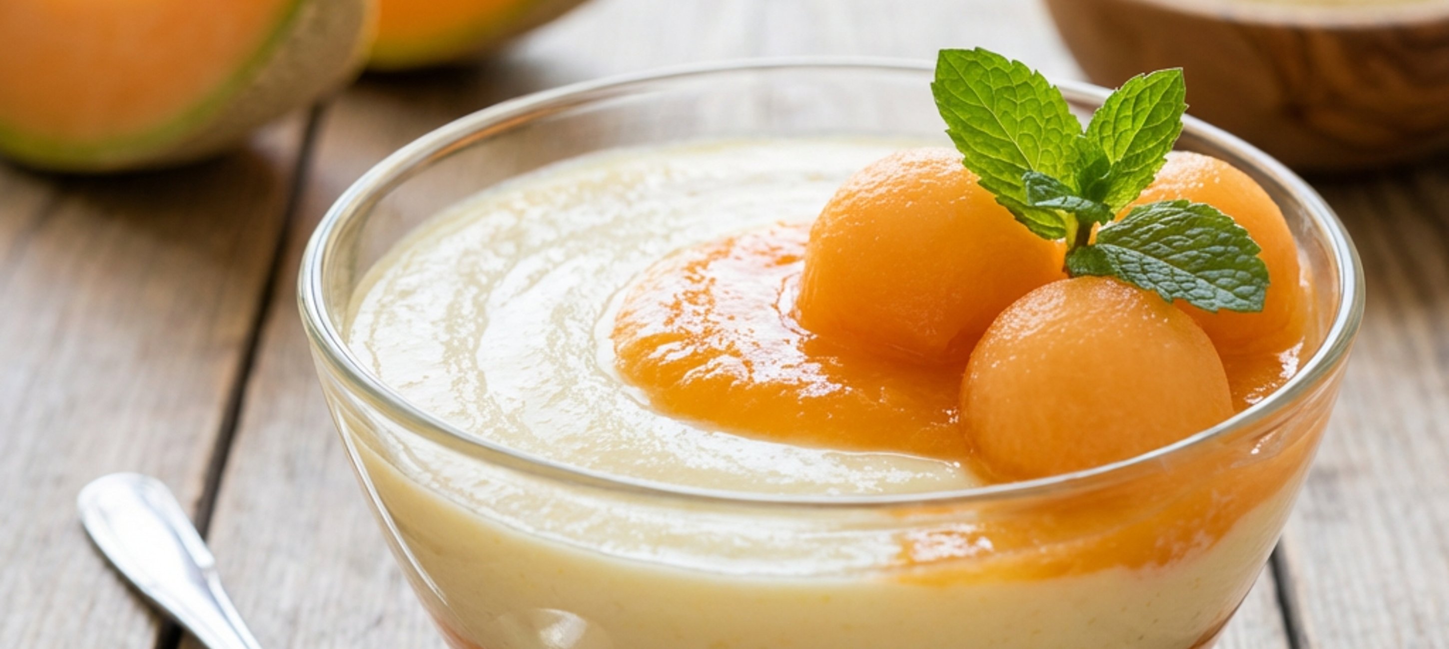 Garnish with cantaloupe balls shaped with a melon baller and fresh mint.