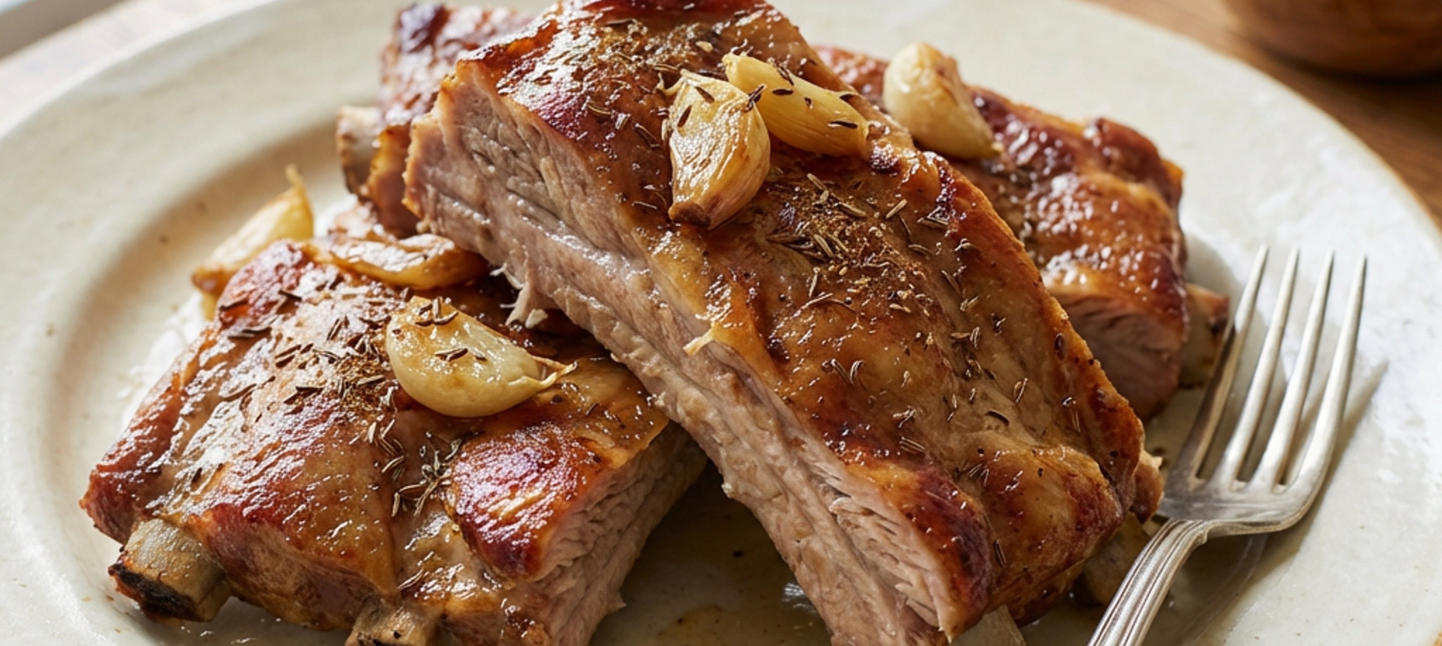 - 2Slice the ribs along the bones, salt, pepper, sprinkle with ground cumin, and arrange them in a baking tray.