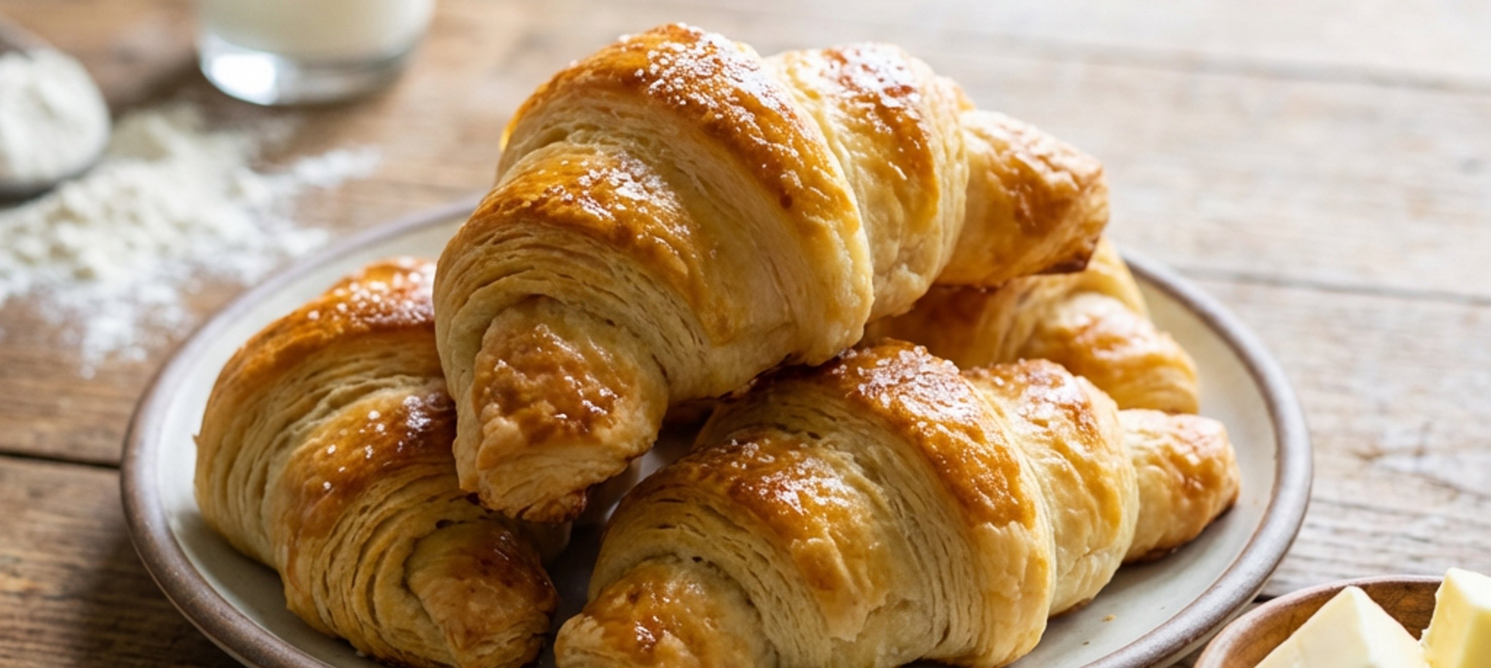 - 3A kelesztési idő lejárta után tedd a tésztát lisztezett deszkára, oszd nyolc részre és gyúrj belőle gombócokat. Minden gombócot nyújts 2-3 mm vastagságúra úgy, hogy tésztalapokat kapj, majd rétegezd őket egymásra. Egy tésztalapot kenj meg a lehűtött reszelt vaj 1/7 részével, borítsd be a következő tésztalappal, ismét kend meg a vajjal, majd folytasd, amíg el nem fogynak a tésztalapok. Az utolsó tésztalap tetejét már ne kend meg.