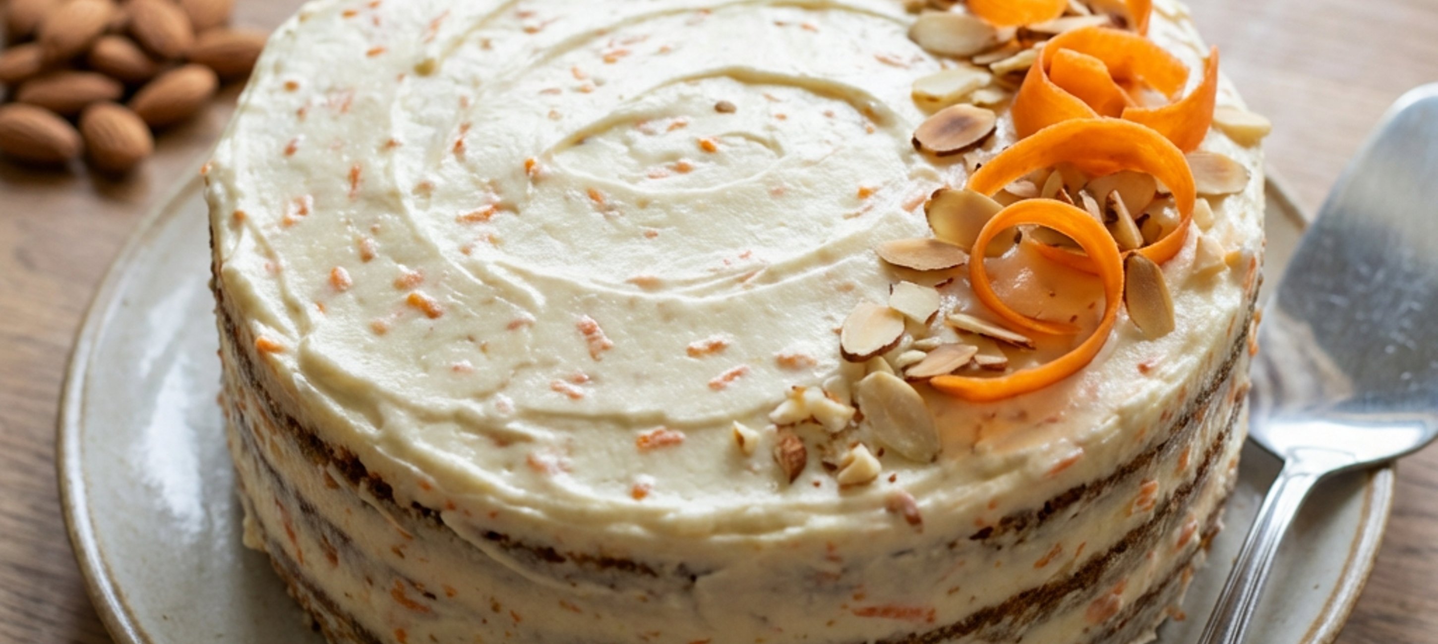 - 2When the batter is smooth and creamy, stir in the peeled and grated carrots (using a large-hole grater) and the crushed almonds.