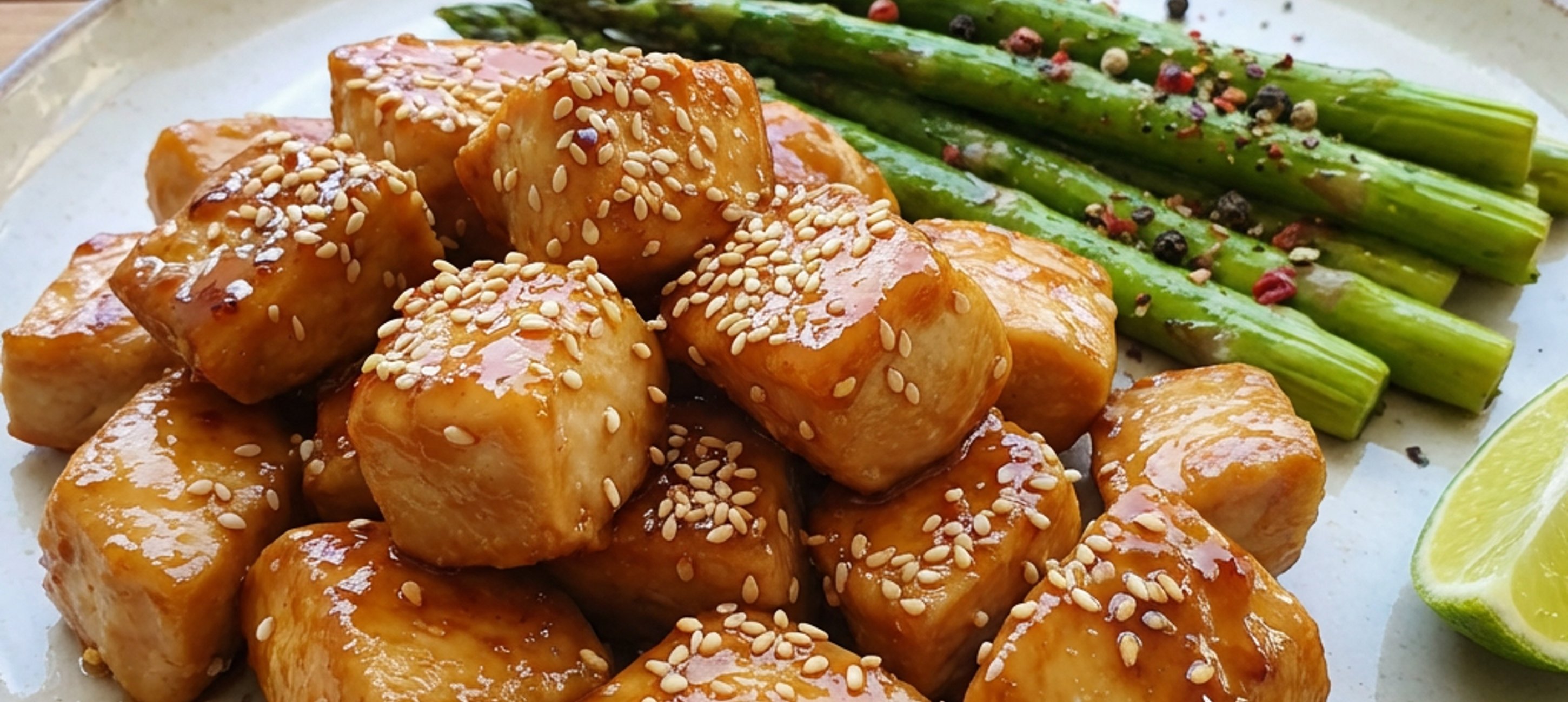 - 4Once done, remove from heat, sprinkle with sesame seeds, and serve hot with the sautéed asparagus.