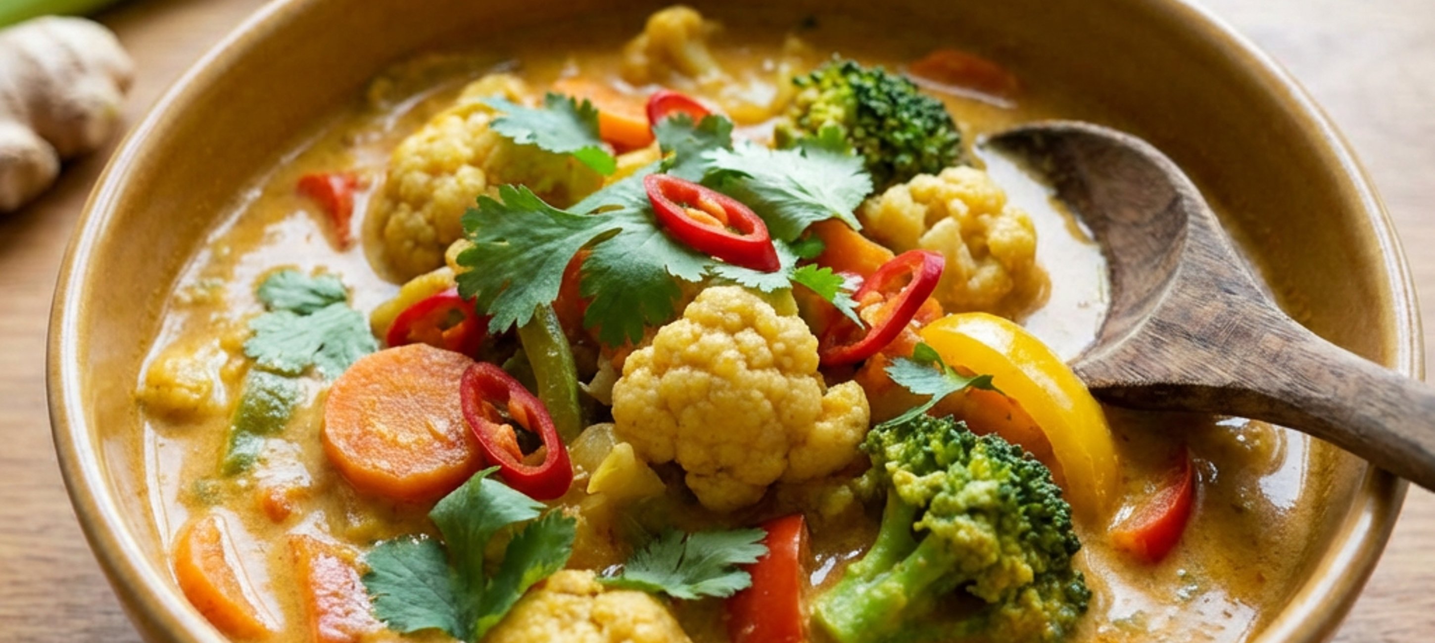 - 11Add the cauliflower and broccoli, reduce the heat by half and cook for 5 minutes.