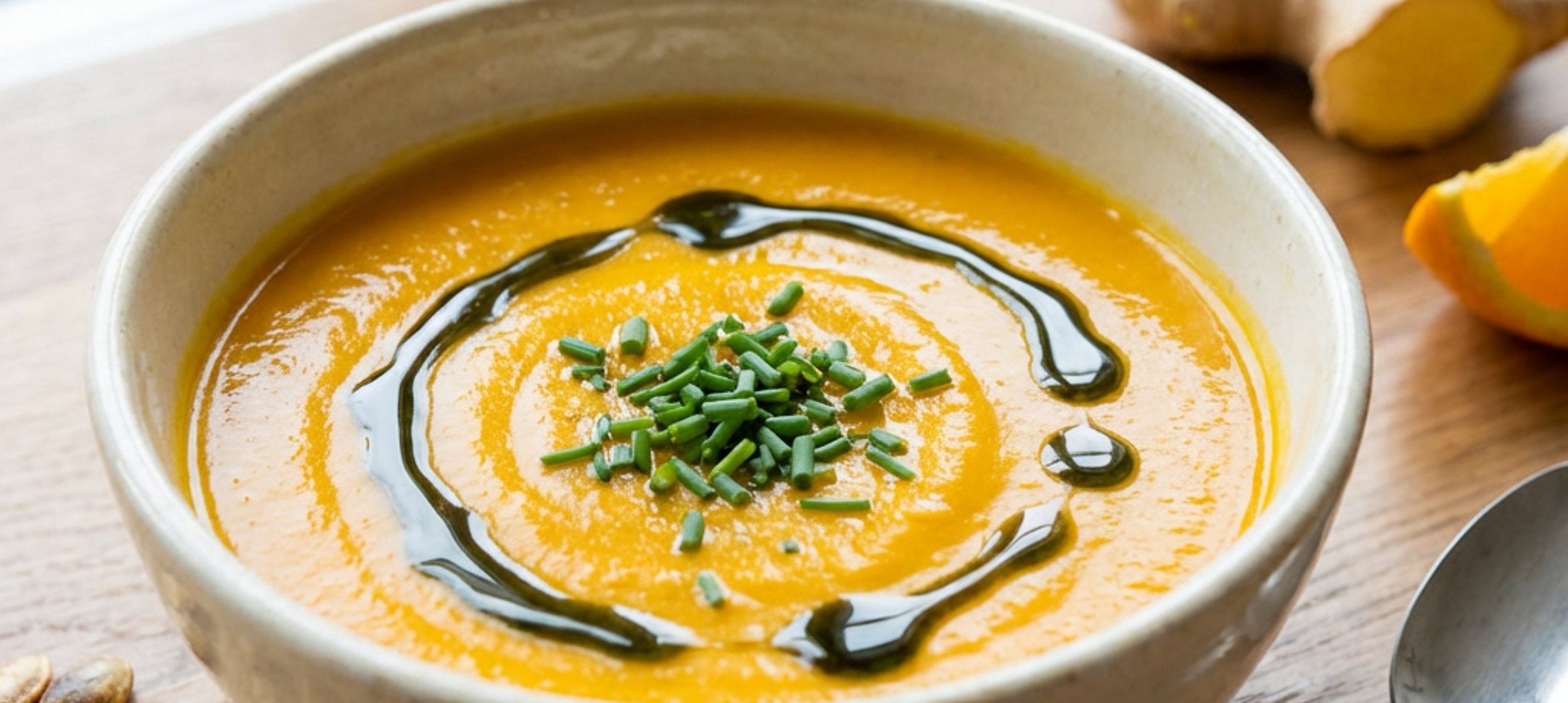 - 6When serving, drizzle with a little pumpkin seed oil and sprinkle with chopped chives.