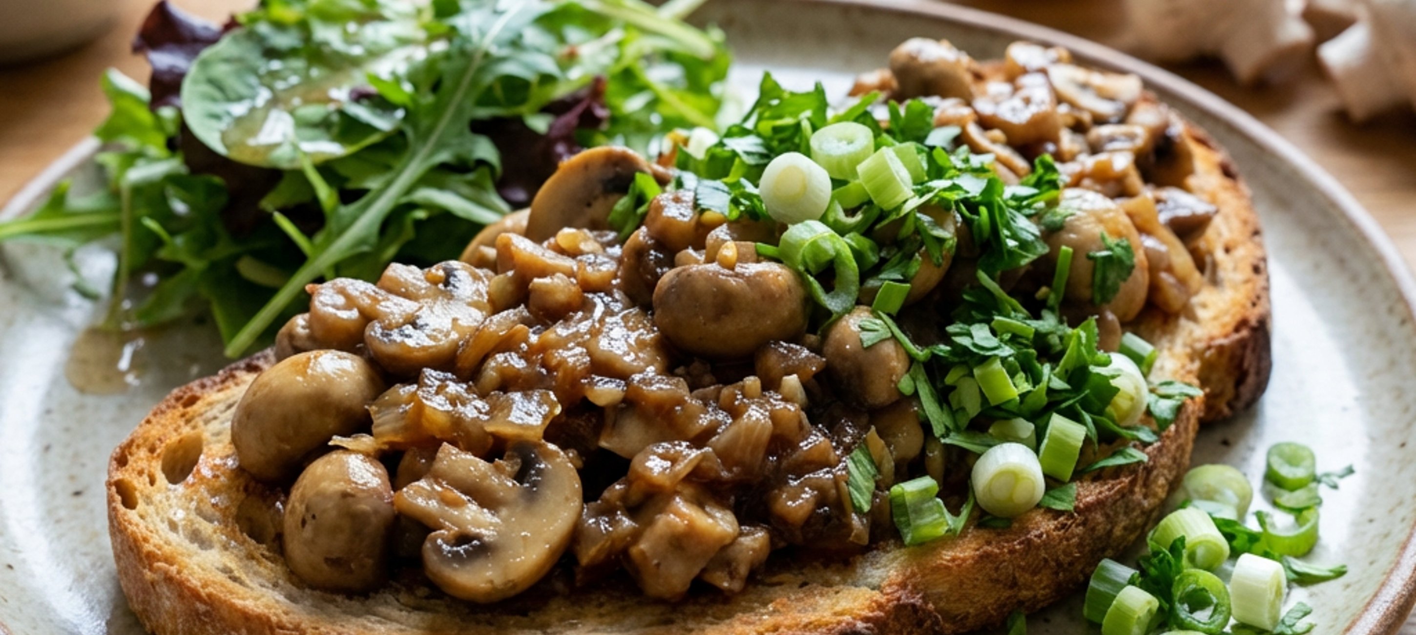 Spoon the mushroom ragout onto the toast, sprinkle with greens, and serve with a simple olive oil and lemon juice salad.