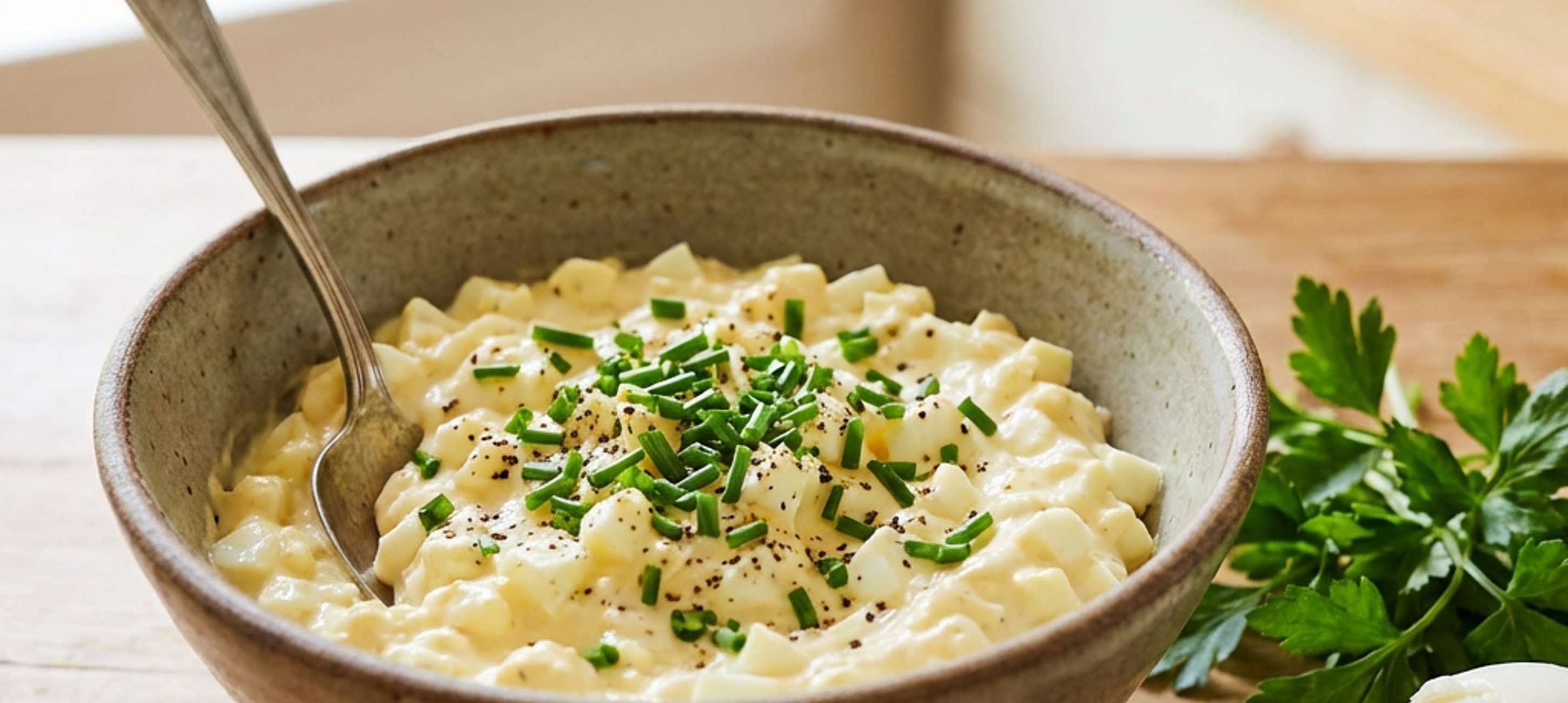 - 4Instead of traditional fatty mustard, you can also use Dijon mustard, which will give the spread a more distinct flavor. It's not necessary to use all the egg whites in the egg spread; you can even stuff some of them. You can also mix finely chopped parsley or chives into the spread.