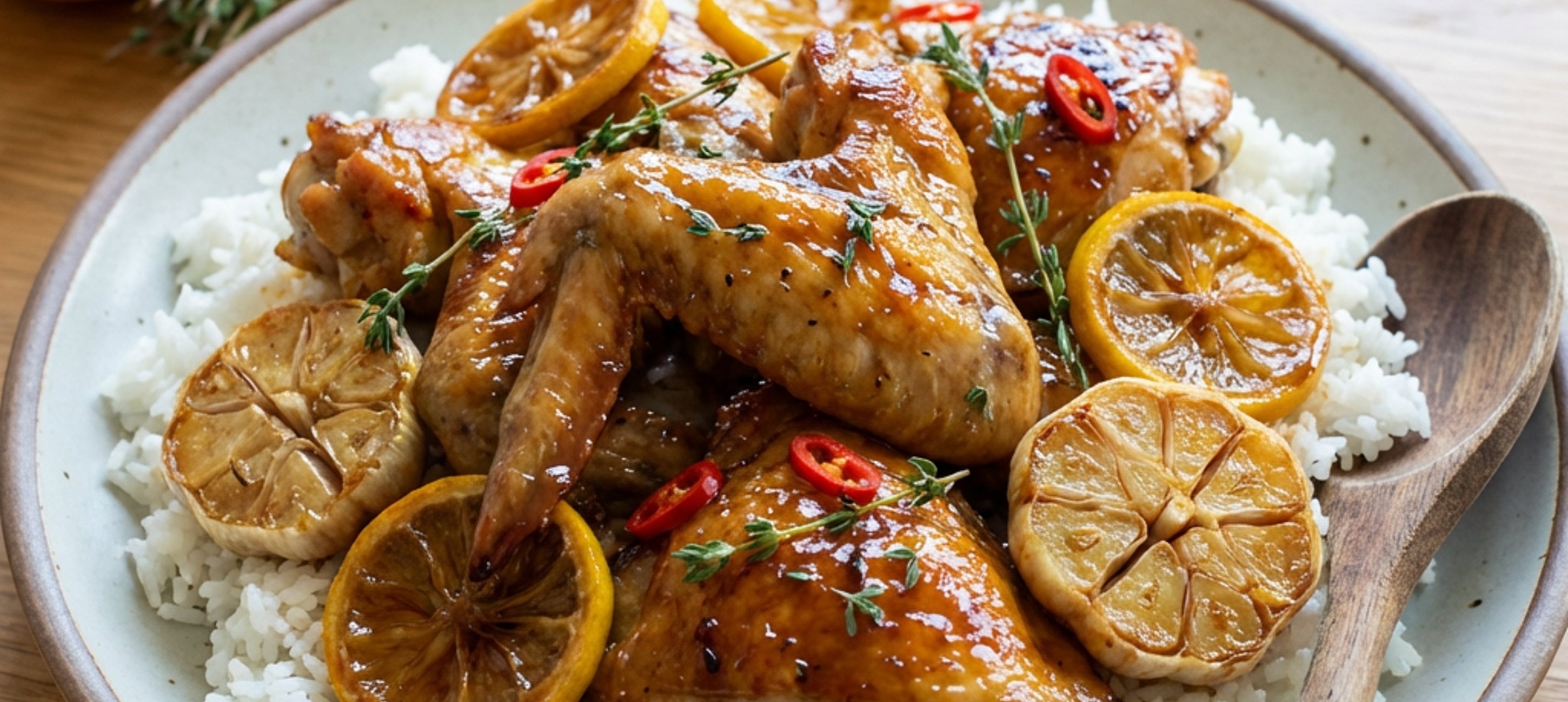 - 1Wash the lemon thoroughly under warm running water, then cut it into 16 slices. Halve the garlic heads lengthwise, and do the same with the chili pepper.