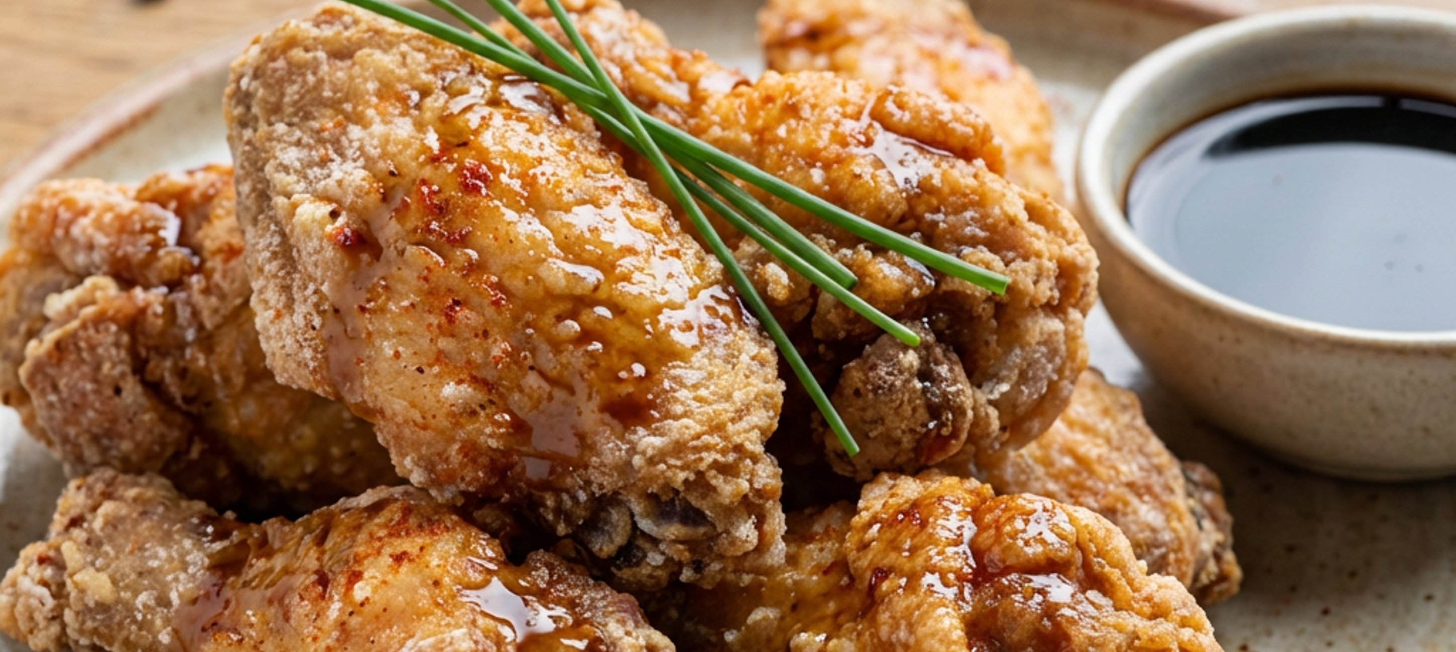 You can serve the fried chicken wings dipped in sweet chili sauce and then in chopped chives, or even prepare them with BBQ sauce.