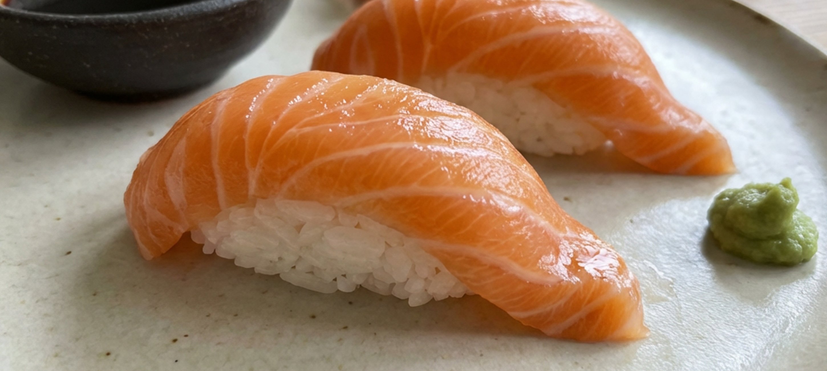 - 3Dip the salmon nigiri into soy sauce flavoured with wasabi paste and eat it with pickled ginger.