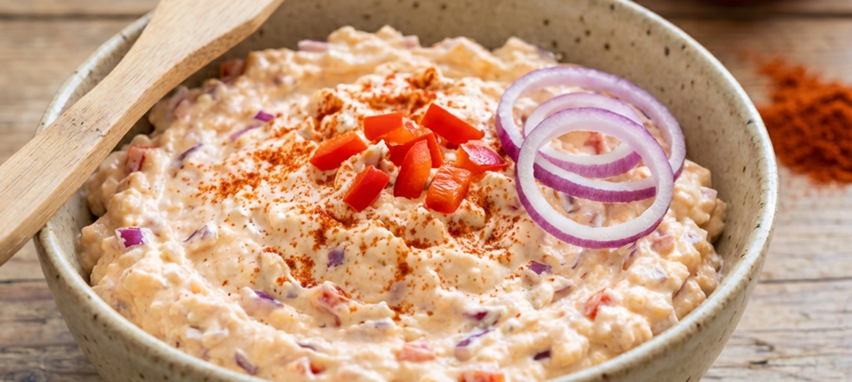 - 2In a bowl, mix the onion, bell pepper, cottage cheese, and ground sweet paprika. Season with salt and pepper to taste.