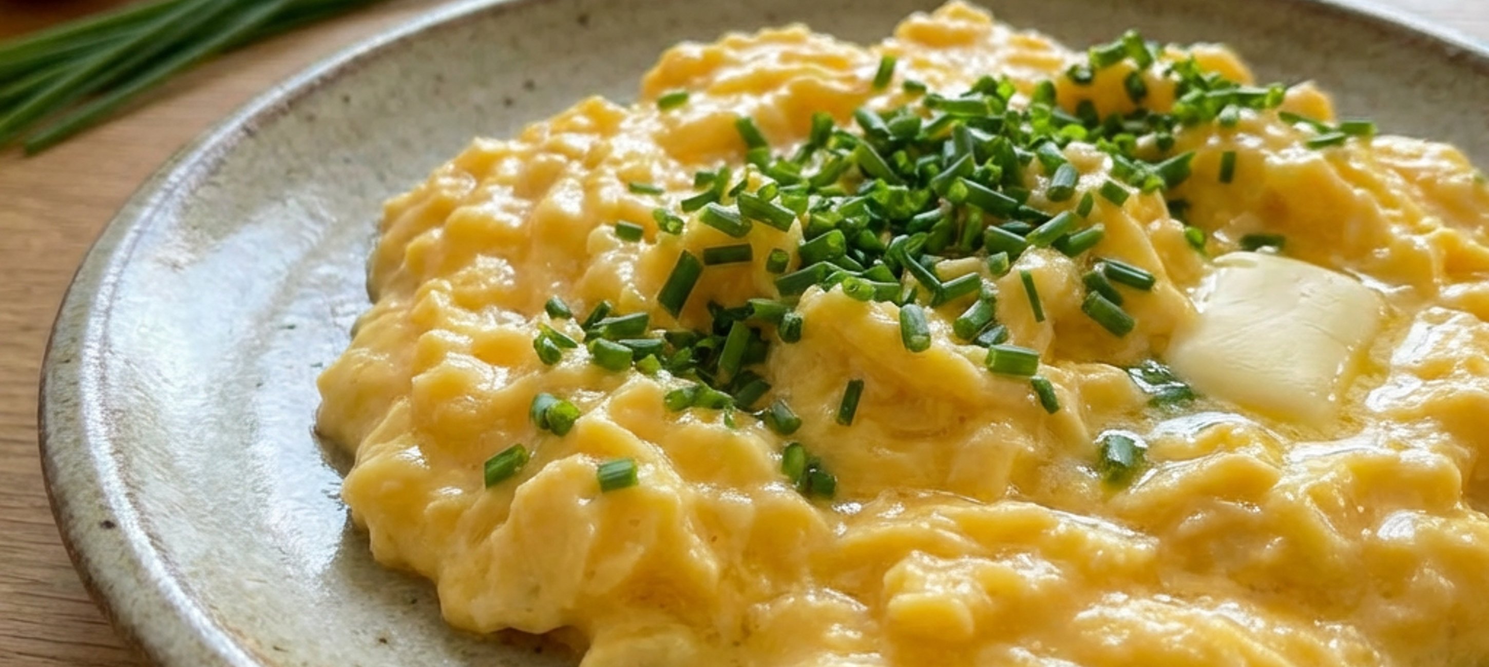 - 3After 1.5 minutes, remove the pan from the heat, season the scrambled eggs with salt and pepper to taste, mix, then sprinkle with chopped chives.