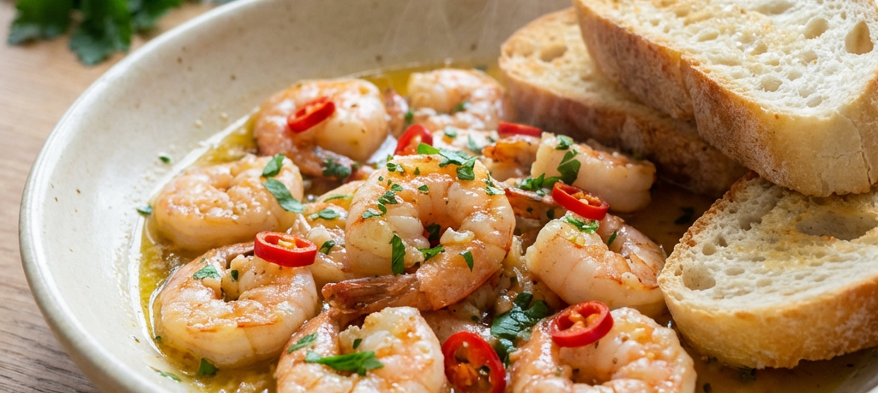 - 7Pour this over the prawns, sprinkle with chopped parsley, and serve hot with white bread.