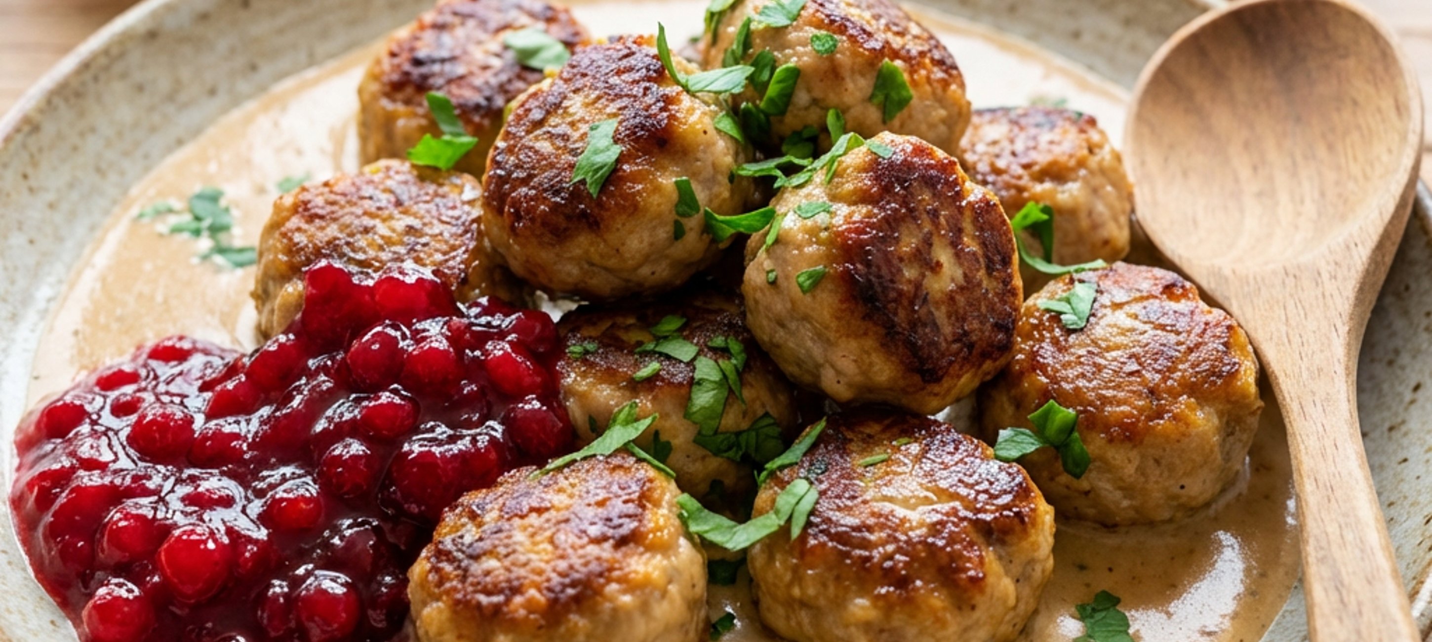 The meat mixture is relatively soft, so it's better to keep it in the refrigerator for a longer time before shaping. Meatballs are traditionally served with mashed potatoes and cranberry sauce, but they can also be served with boiled potatoes and a creamy sauce.