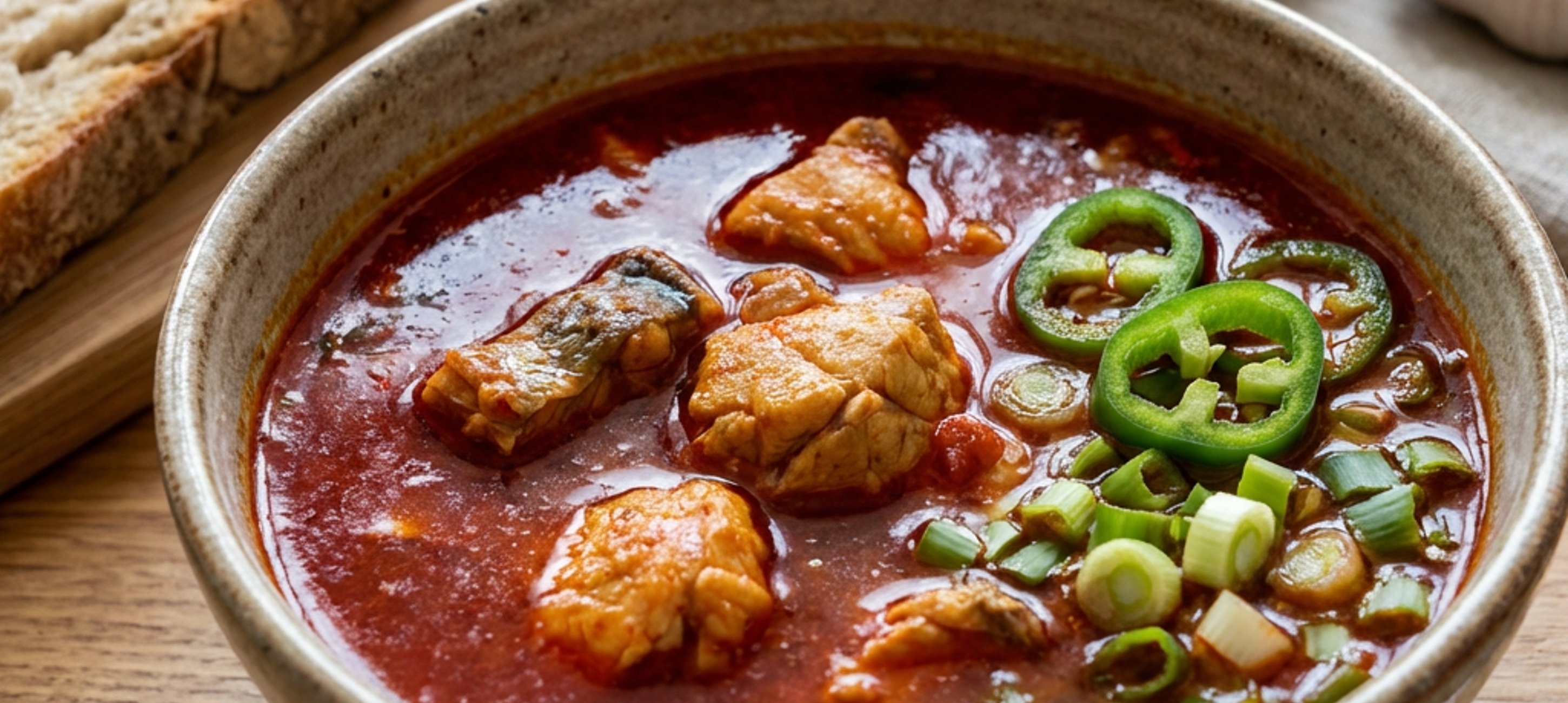 We boil the fish soup vigorously so that the fish fat and the liquid can form a silky emulsion with the help of paprika. You can freshen up the fish soup by finely dicing a small amount of pointed hot pepper and spring onion, then sprinkling it over when serving. If you get fish milt and roe, add them to the fish soup only at the very end. A glass of light Kadarka or Siller wine pairs well with it. This recipe is a cross between Baja and Tisza fish soup.