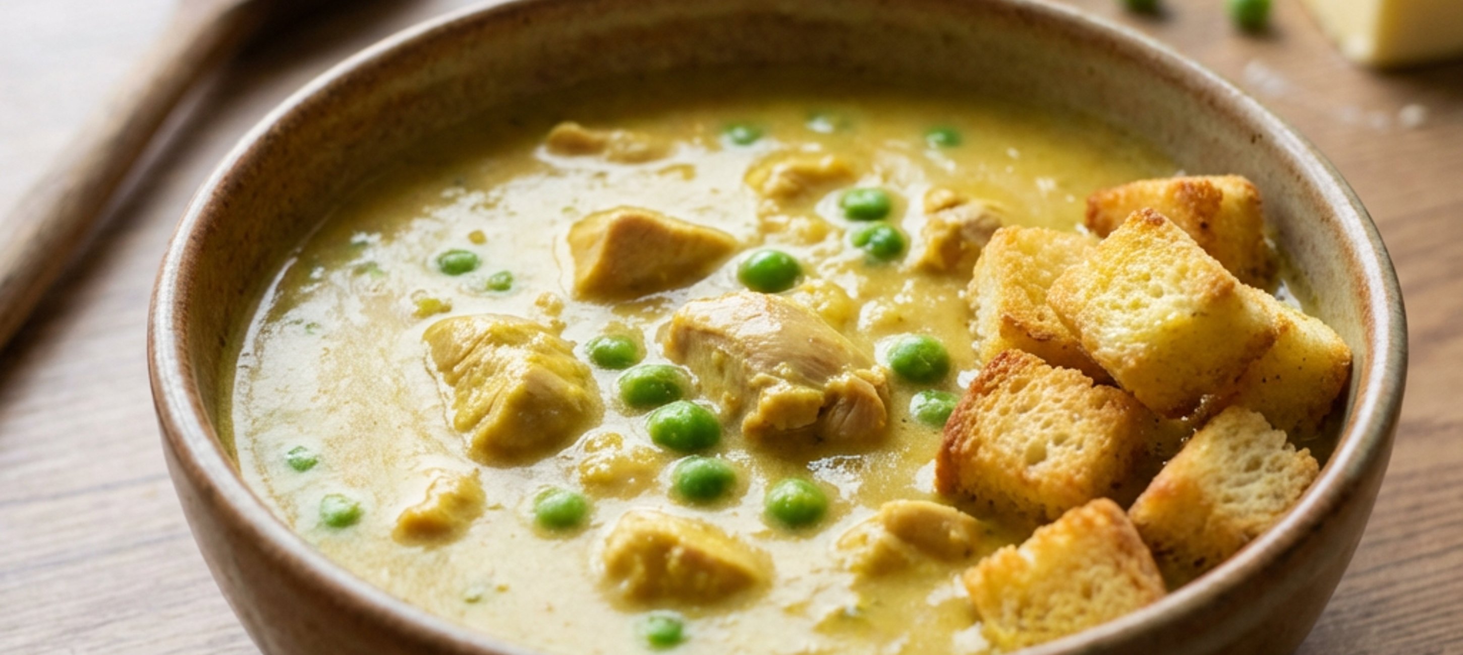 - 3Add the chicken stock, mix thoroughly, then bring to a boil. Reduce the heat to one-third and cook the soup for 12 minutes, stirring occasionally. Add the cream, the diced chicken, and cook for another 3 minutes.