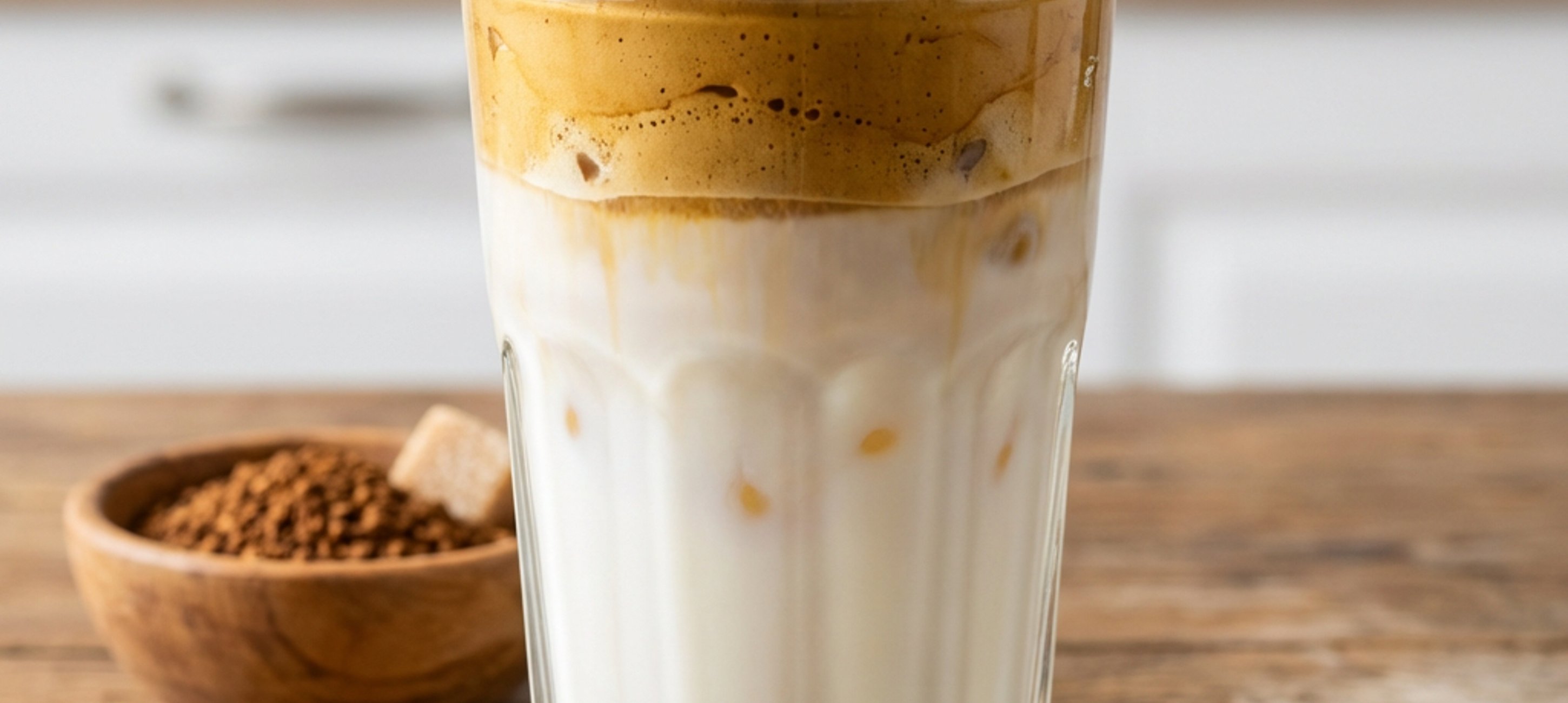 - 1Place the coffee and sugar in a tall bowl with 2 tablespoons of hot water, then whisk until frothy with an immersion blender.