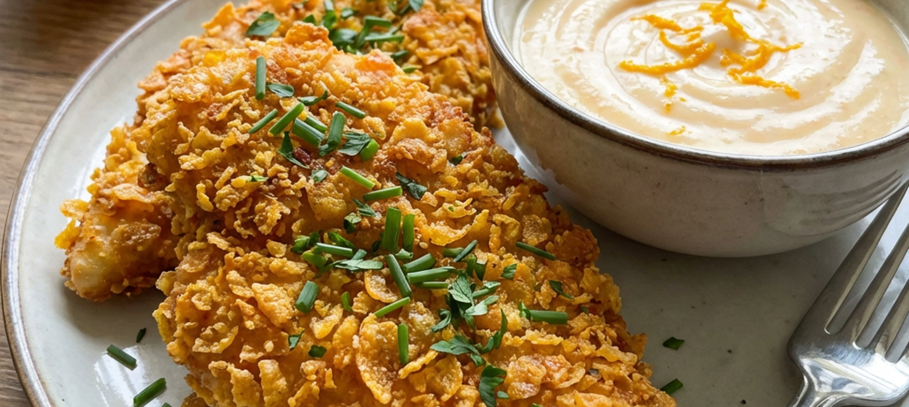 - 4Coat the prepared meat first in rice flour, then in the beaten egg, and finally in the slightly crushed cornflakes. Place the slices on a baking tray lined with baking paper and drizzle them with oil. Bake for 35-45 minutes, depending on the size of the meat. Turn the meat halfway through baking. Serve with the orange sauce.