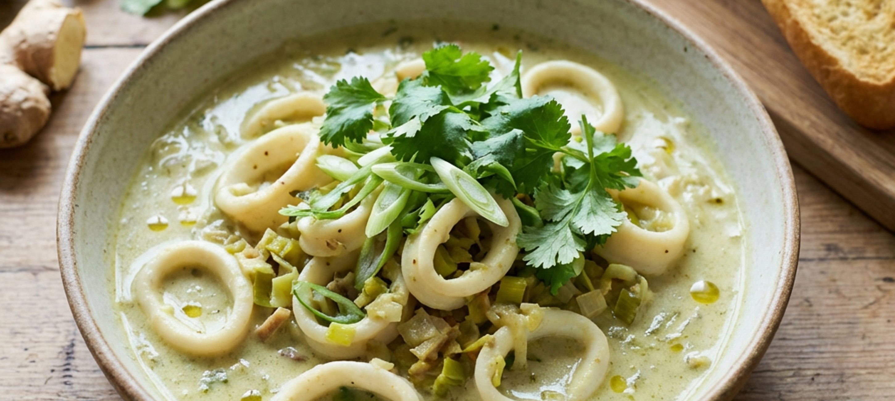 - 5If you don't like it spicy, you can omit the green curry; in this case, you can season it with lemongrass, galangal, kaffir lime leaves, etc. Squid becomes very chewy if overcooked, so make sure it only cooks for a few minutes.