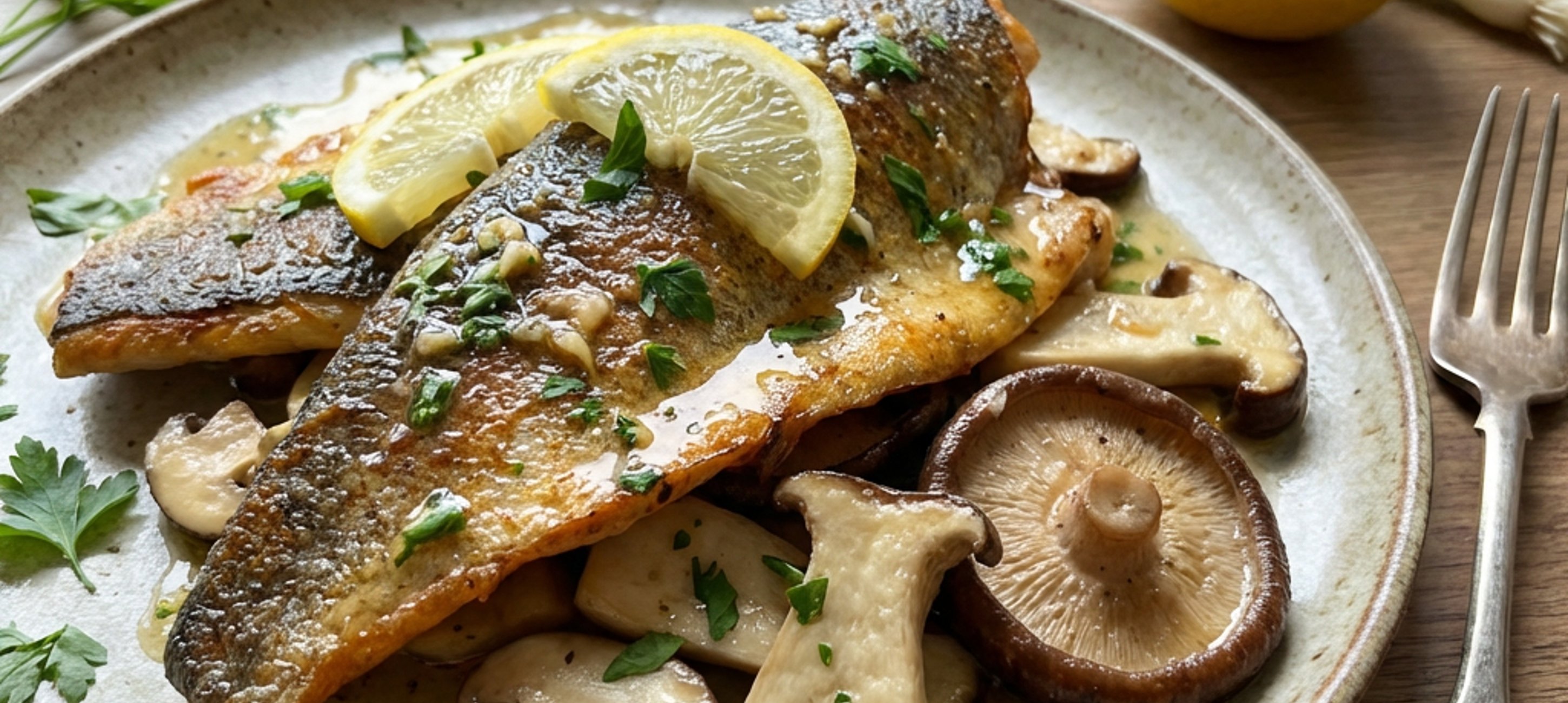 - 3Grease a baking tray with butter, pile in the mushrooms and spring onions, mix them, sprinkle with shiitake mushrooms, arrange the trout slices on top, season with salt, drizzle with the butter-garlic sauce, place lemon slices on top, and bake in a preheated oven at 190 degrees Celsius for 30 minutes until done.