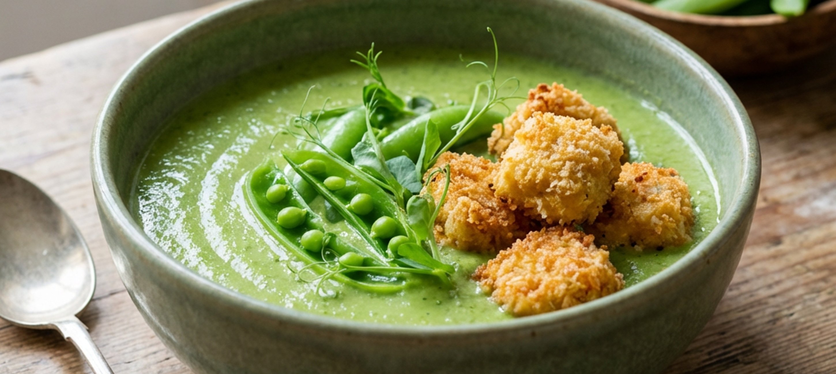 - 6Serve hot with blanched and refreshed sugar snap peas in ice water, pea shoots, and the chicken pieces.