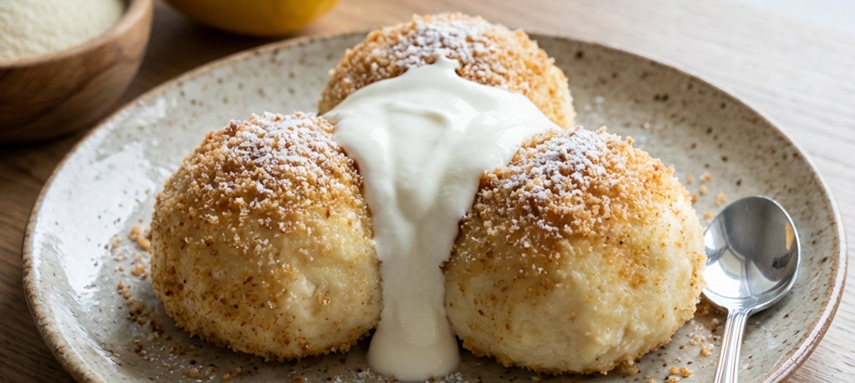 - 4Drain them, then roll them in toasted breadcrumbs and serve with sour cream mixed with powdered sugar to taste.