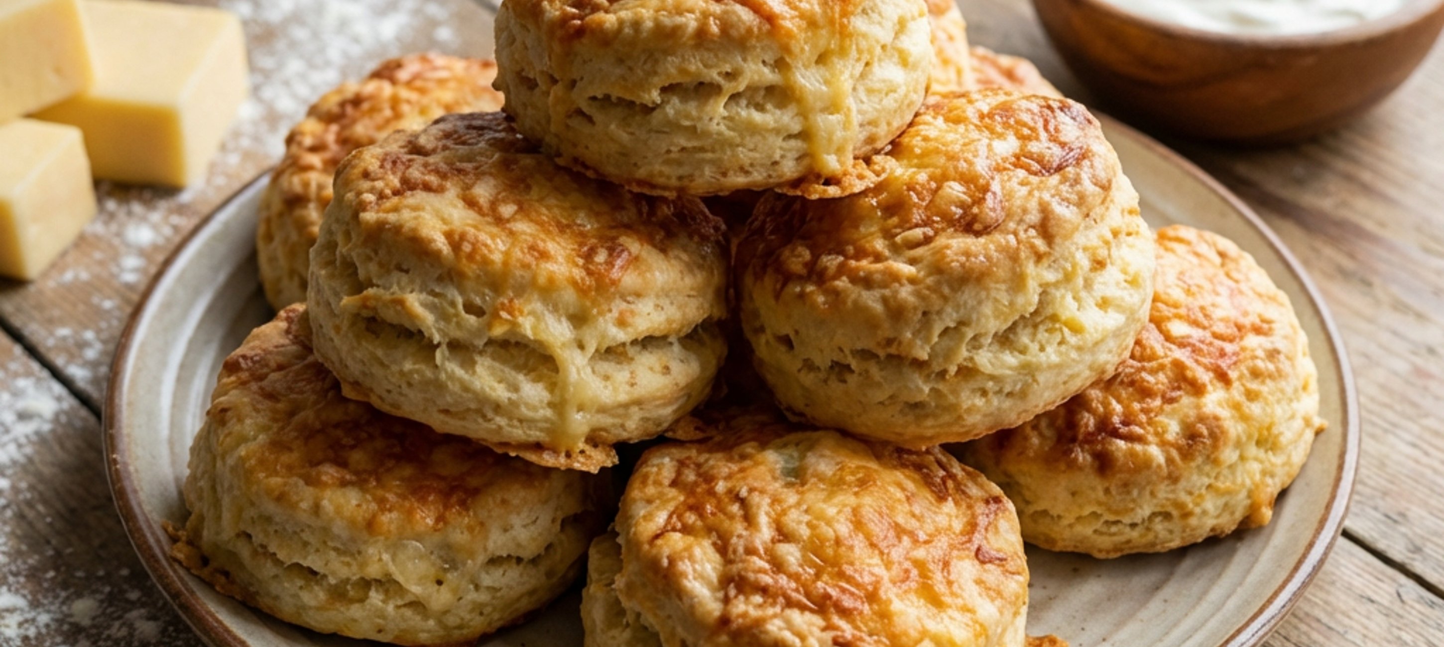 On a floured board, roll out the dough to 1-1.5 cm thickness, brush with the beaten egg yolk, sprinkle with grated cheese to taste, cut out scones of desired size, and arrange them on a baking tray lined with baking paper.