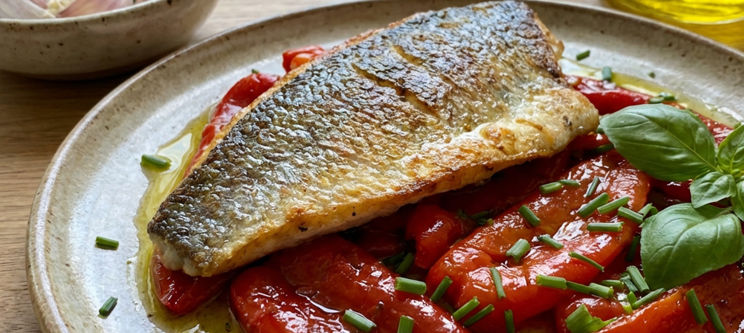 - 7Serve the freshly fried fish with the bell pepper salad and fresh herbs.