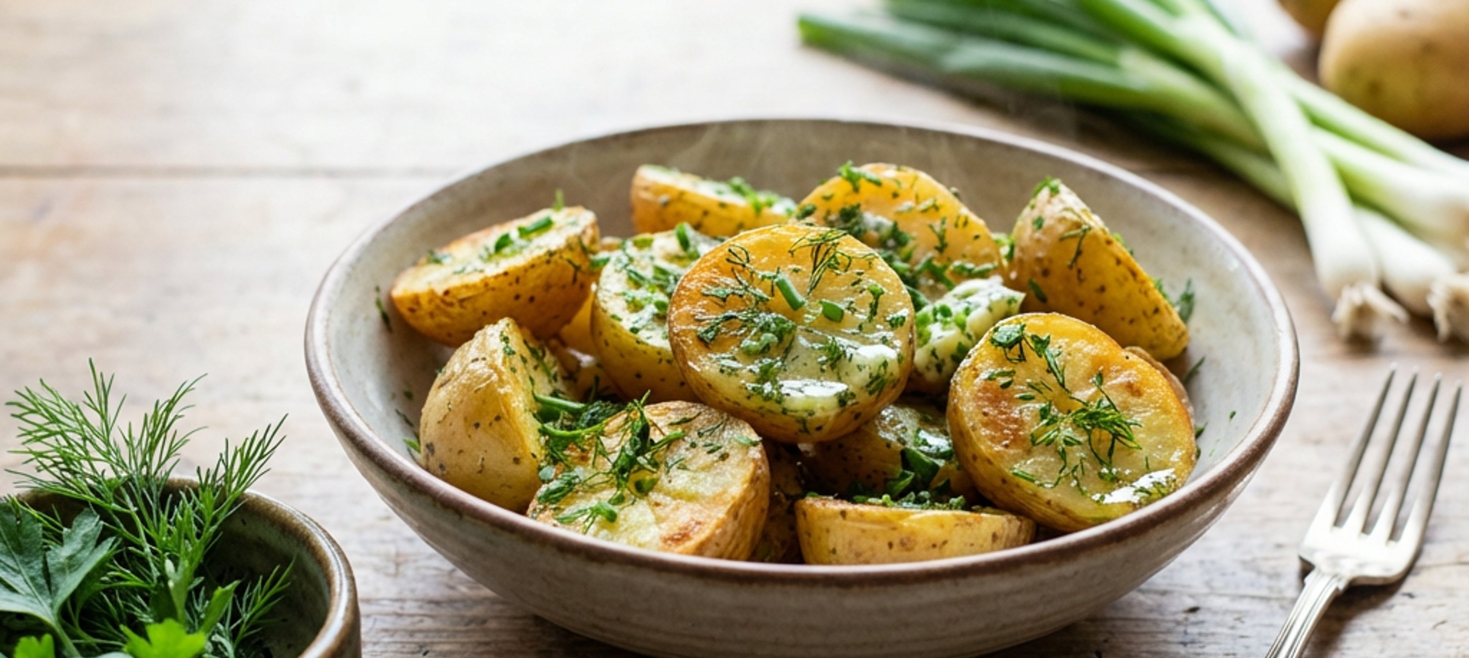- 4Meanwhile, heat the remaining butter and toss the herbs in it in a pan large enough to hold all the potatoes.