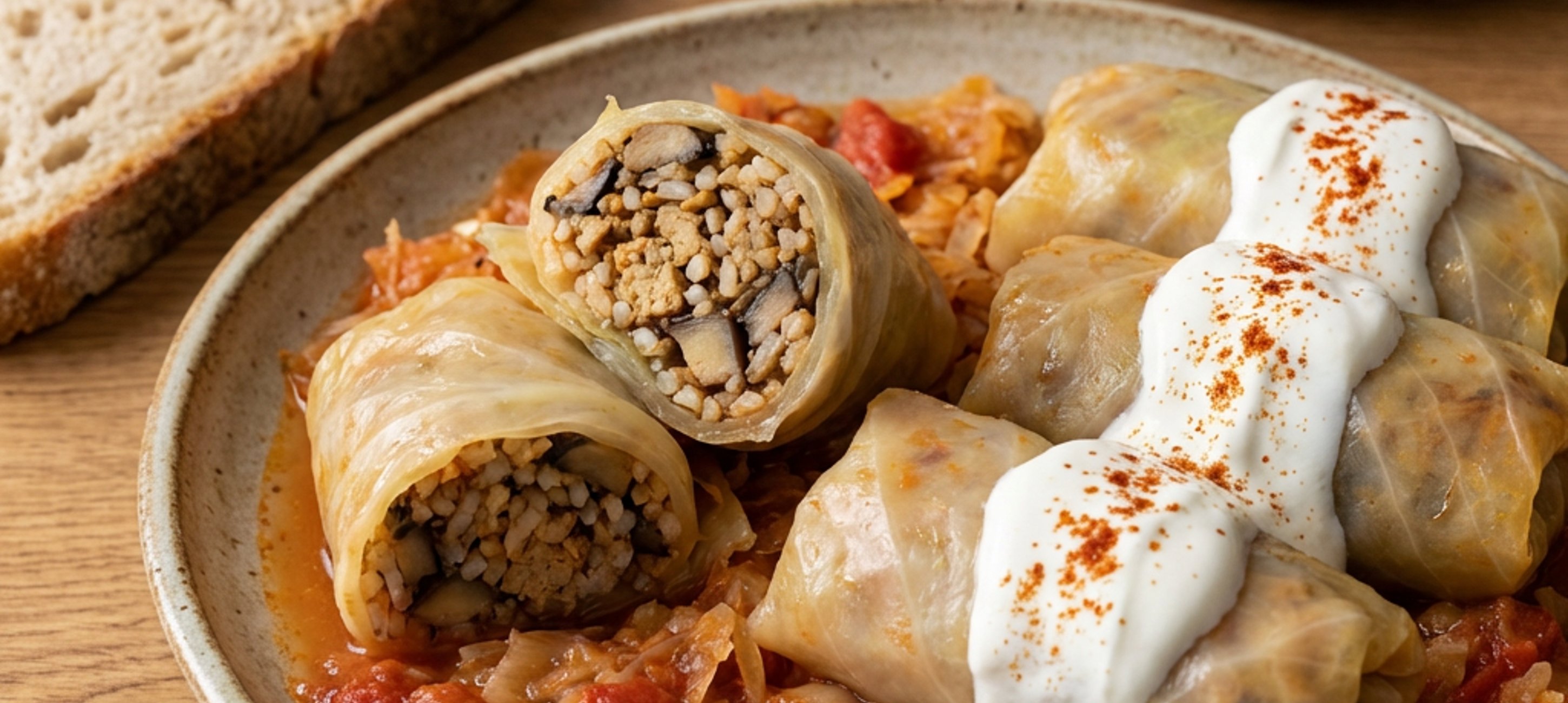 - 11A tálaláshoz szedj ki az alapból a tányérra, erre tedd a töltött káposztát, amire pedig mehet egy kis tejföl, megszórva pirospaprikával.