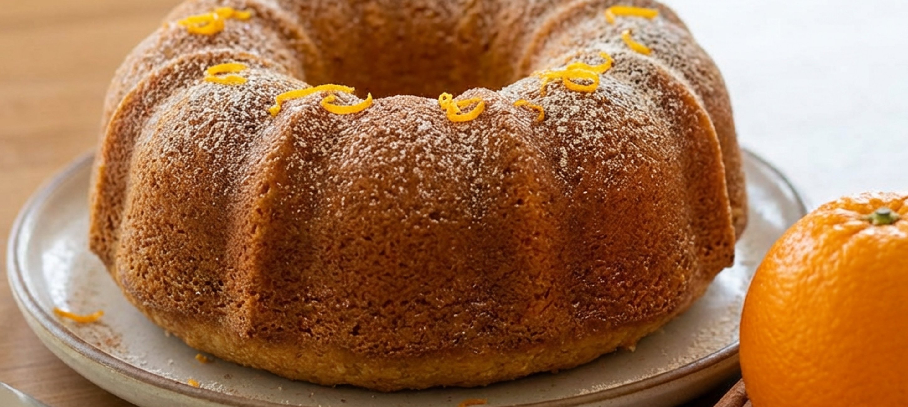 Once the Gugelhupf is done, turn it out of the mold onto a wire rack, and when it has cooled, sprinkle with cinnamon powdered sugar.