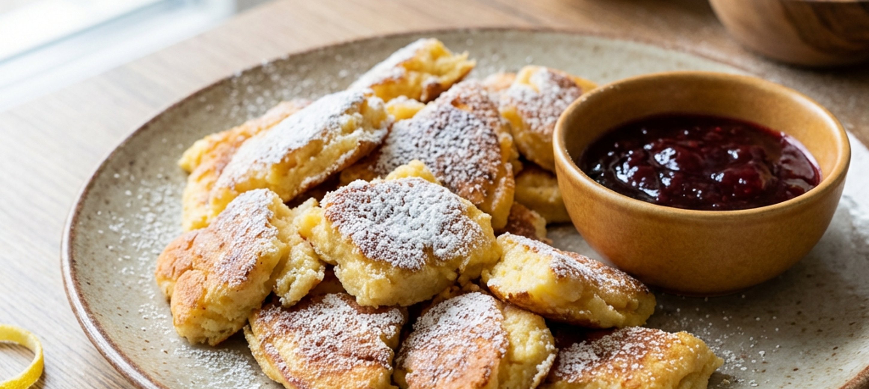 - 5Serve with powdered sugar, applesauce, or jam.