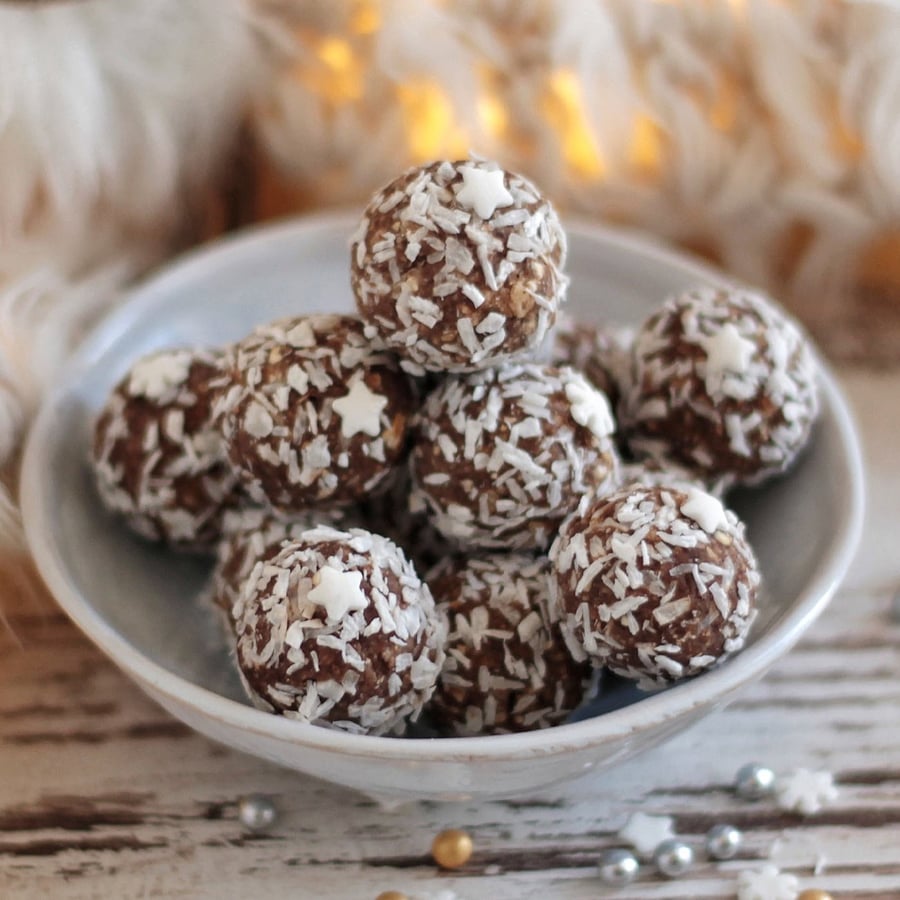 - 1A gesztenyepürét felolvasztjuk, majd összedolgozzuk a darált babakeksszel és zabbal, valamint a lekvárral vagy pürésített aszalvánnyal. A masszából golyókat formázunk, majd a golyókat kókuszreszelékbe forgatjuk.