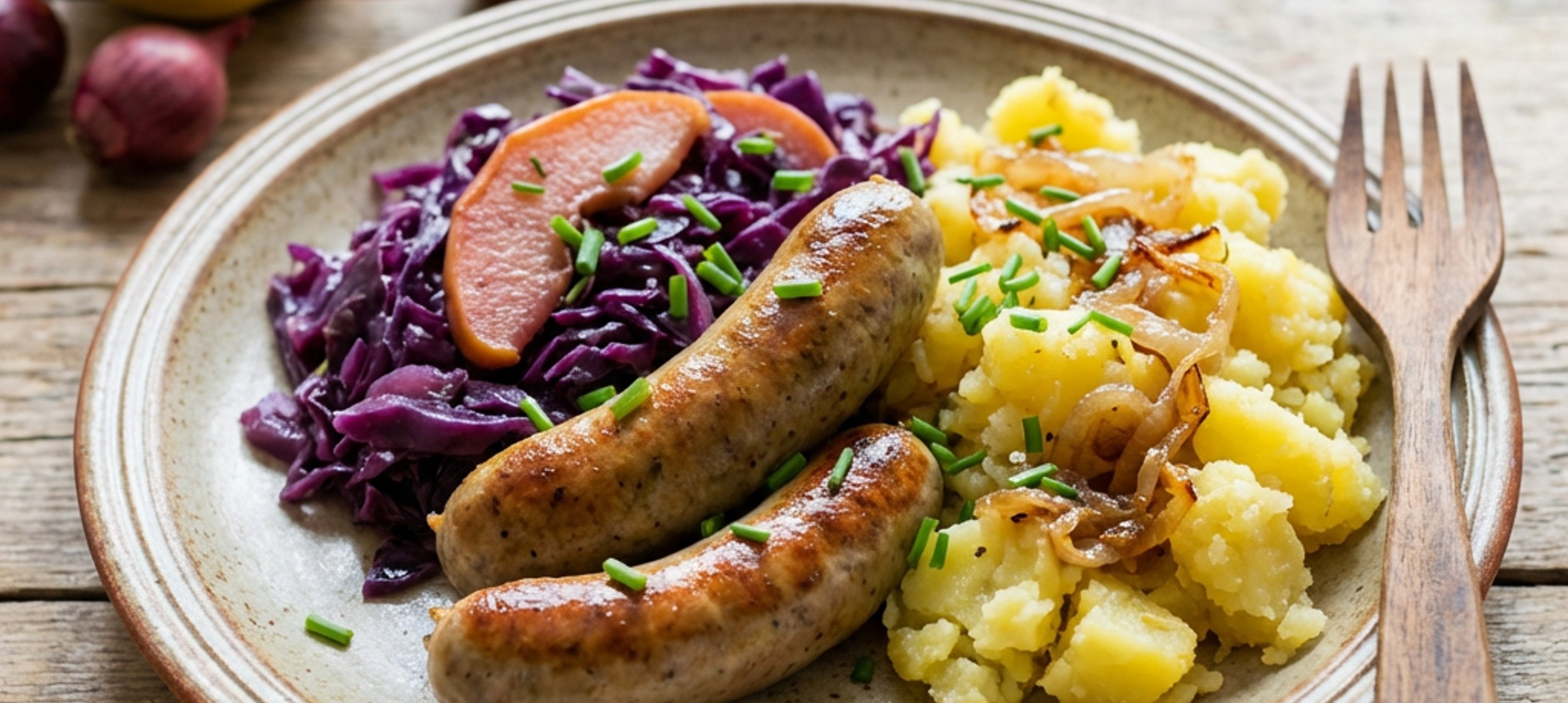 Serve with the onion mashed potatoes and red cabbage.