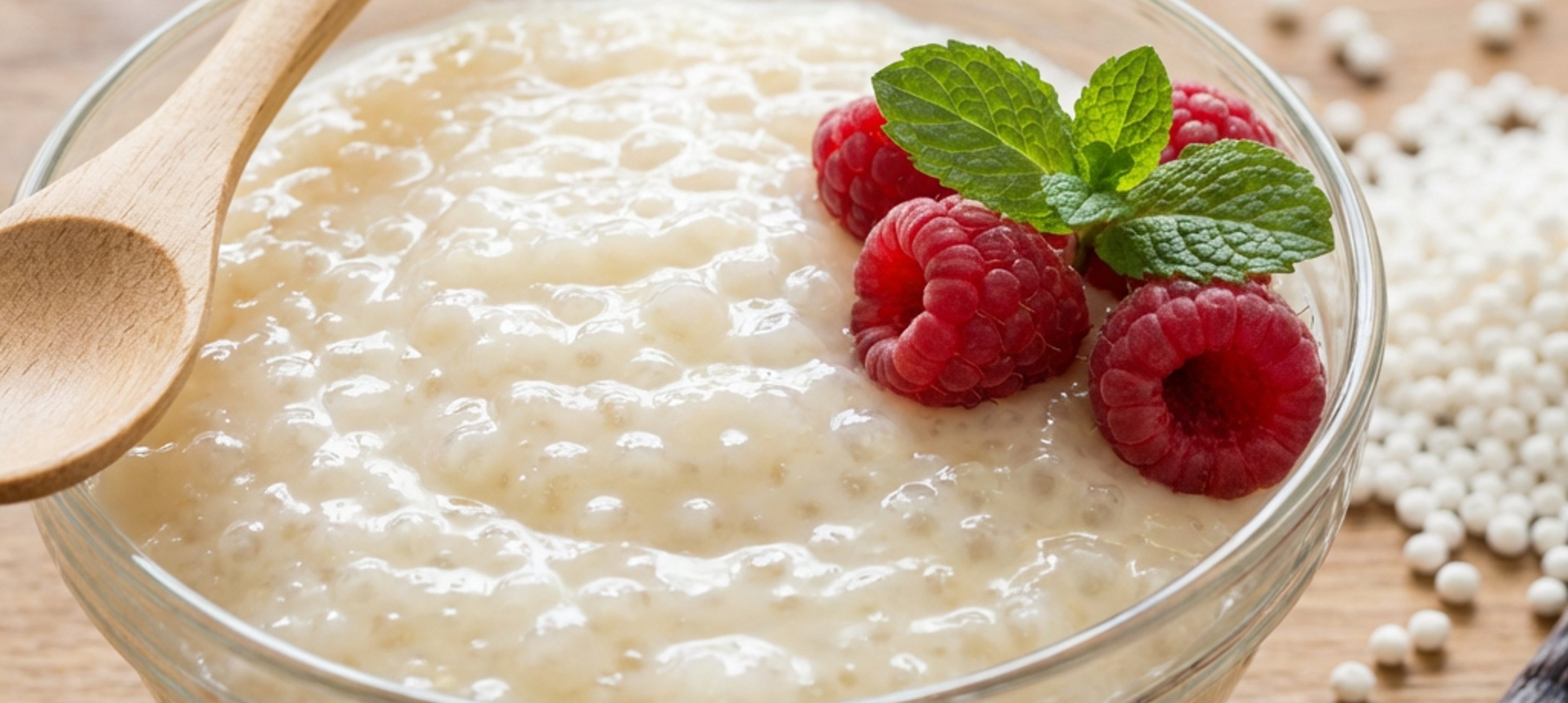 Add a can of coconut milk and enough water to cover the tapioca pearls.