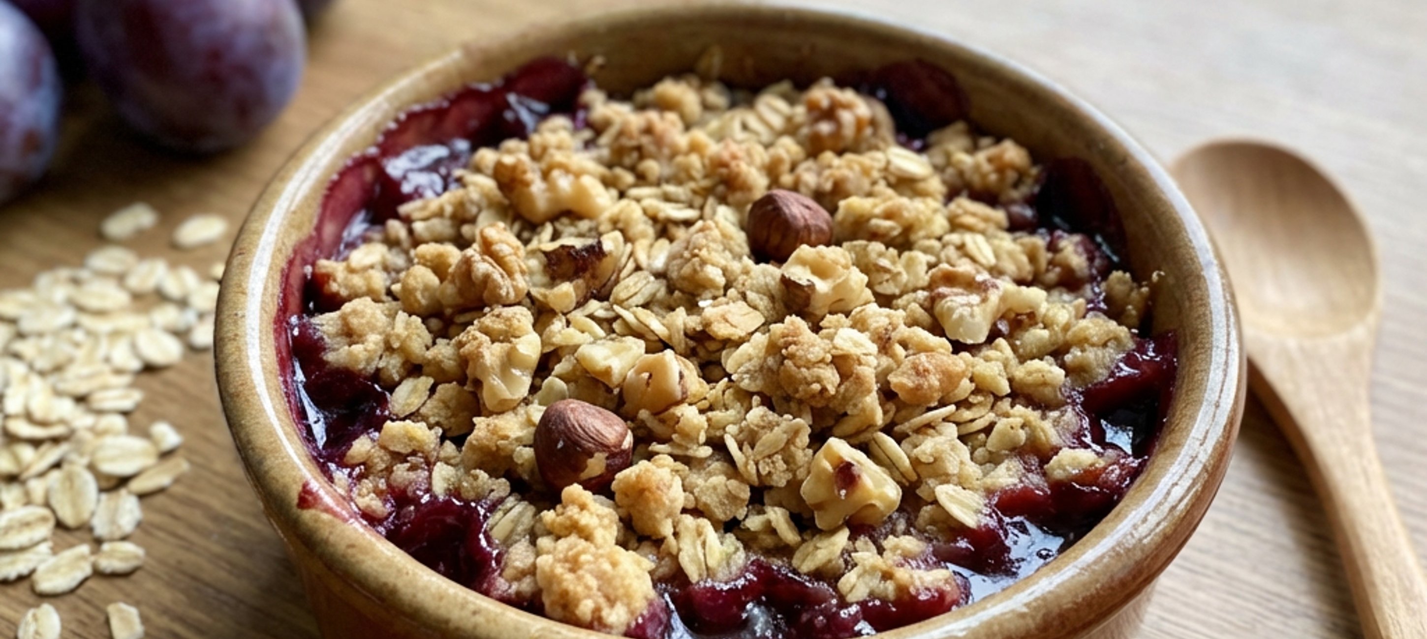 Prepare the 'dough': mix the rolled oats and oat flour, add the sugar, salt, chosen seeds, and coconut oil. Crumble by hand.