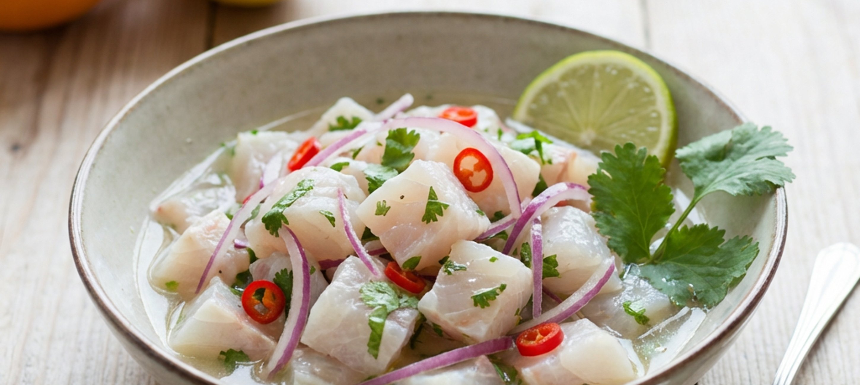 In this recipe, the fish is "cooked" by the citrus juice, meaning the proteins are denatured by the acids. Depending on how raw you like the fish, you can play with the acidity of the marinade and how long you leave the fish in it.