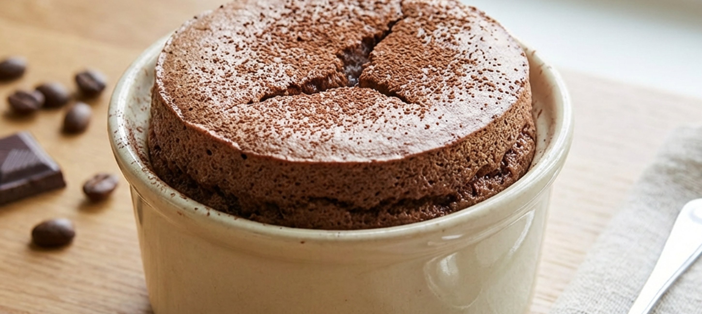 - 1Grease 6 soufflé molds with butter, then sprinkle with cocoa powder. Run your finger along the rim of the mold, this will help the soufflé rise more beautifully.