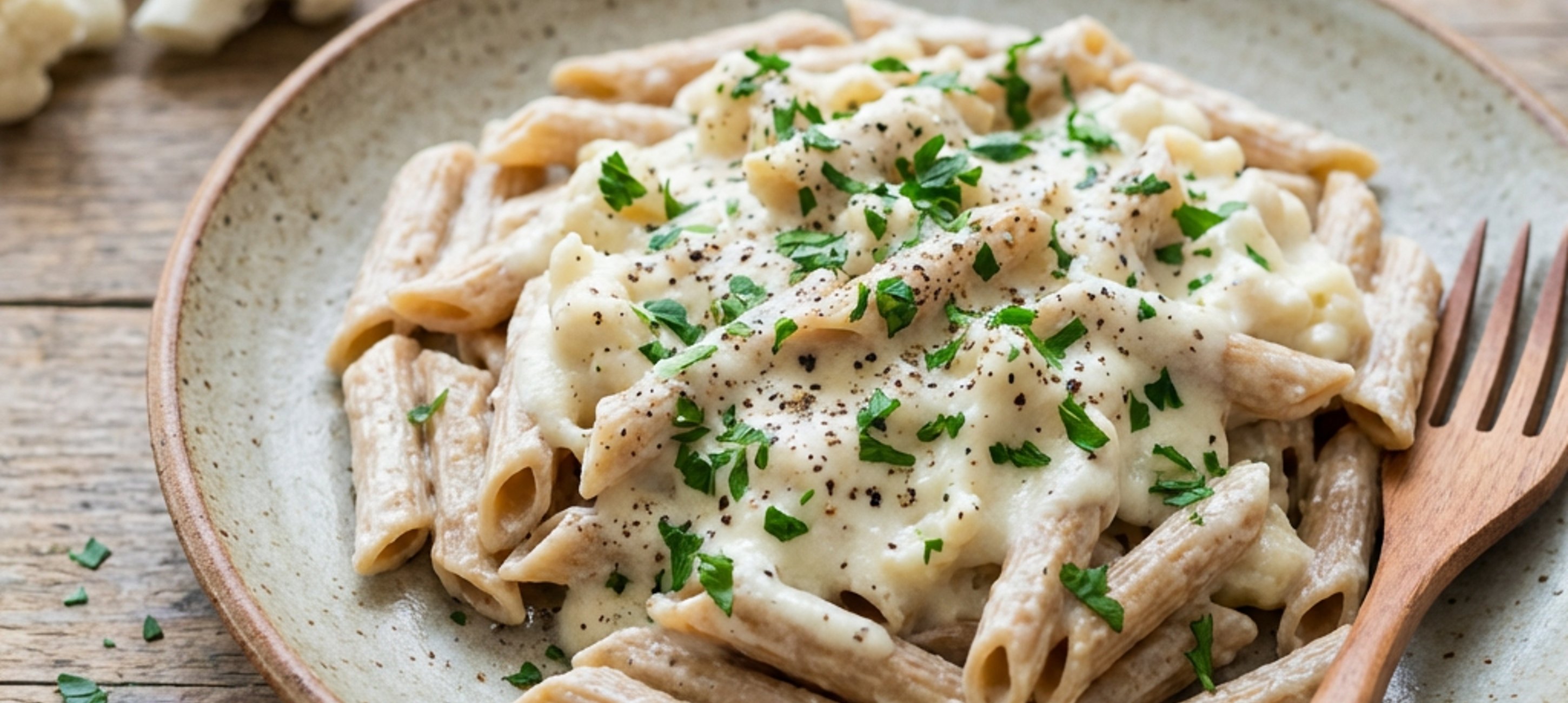 - 4Place the softened cauliflower, sautéed onion and garlic, milk, nutritional yeast, lemon juice, salt, and pepper into a high-speed blender. Blend until you get a very smooth, creamy sauce. Taste and adjust seasoning if necessary.