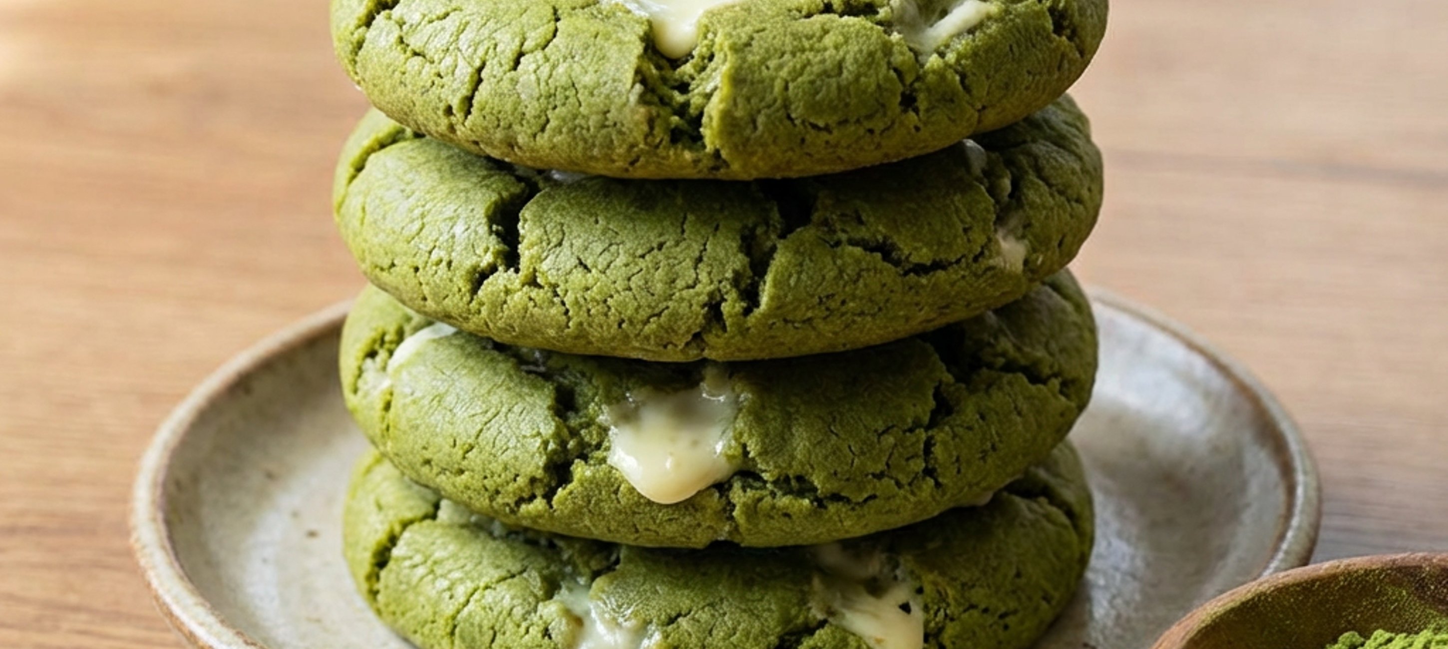 In a separate bowl, mix the flour with salt, baking powder, and baking soda. Add the matcha powder, and gradually fold the dry mixture into the butter mixture using a spatula – do not beat, just gently stir. Finally, fold in the chopped white chocolate or chocolate chips.