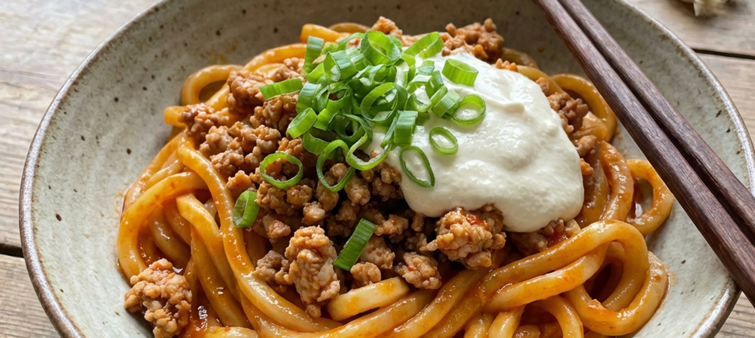 - 5Serve the hot noodles with the minced meat and creamy tofu. Garnish with chopped spring onions.