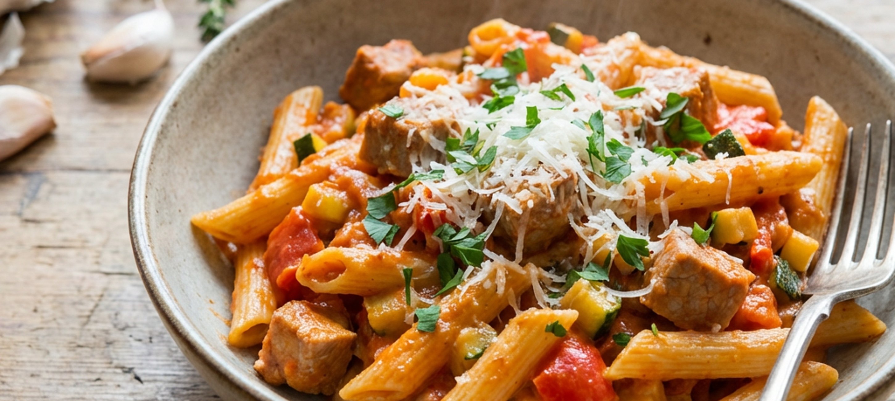 - 10Keverd össze a szószt a főtt tésztával. Vedd le a tűzről, add hozzá a reszelt parmezánt és a petrezselymet és keverd össze.
