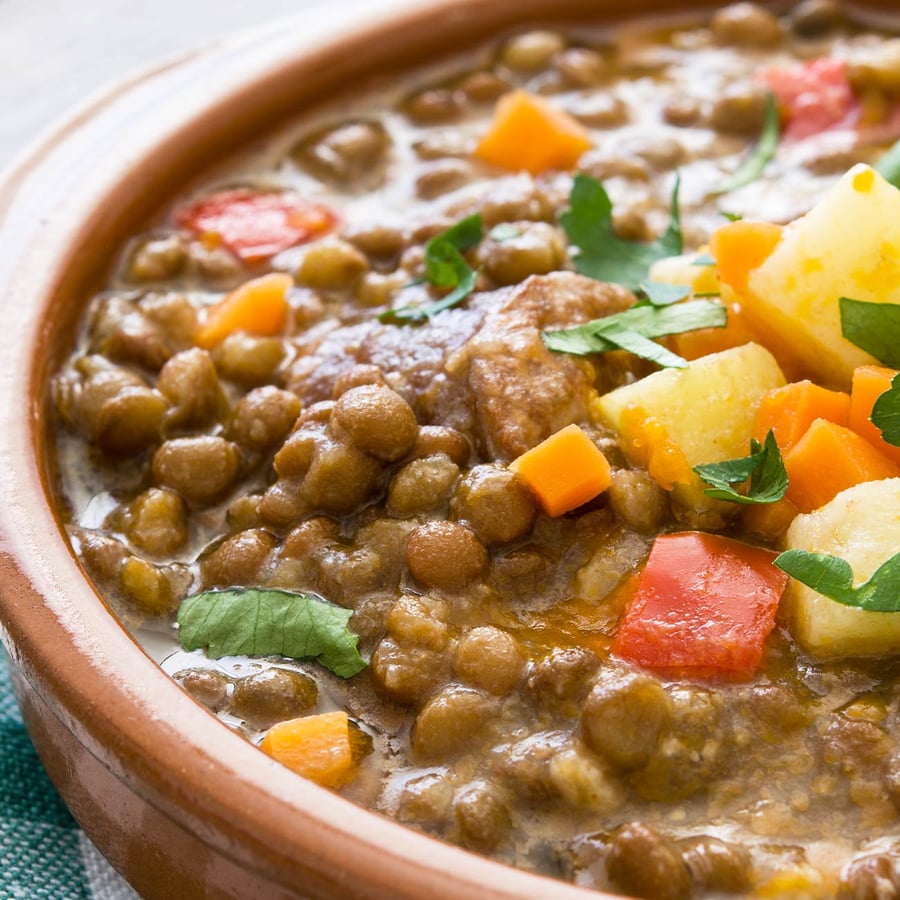 Használj csirkehúslevest (alaplevet) és klasszikus barna lencsét. A lencsét forrald fel az alaplében, hogy teltebb ízt kapjon. Prágai sonka vagy csontozott sonka a legalkalmasabb ehhez a leveshez. A sonka bőrét is beleforralhatod a levesbe, amiben a lencsét főzöd, ez is intenzívebbé teszi az ízét. Ha megfőtt a lencse, akkor vedd ki a bőrt.