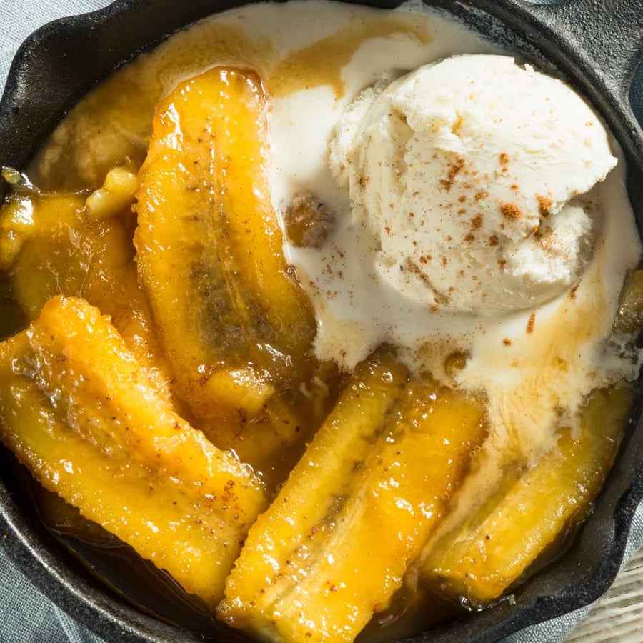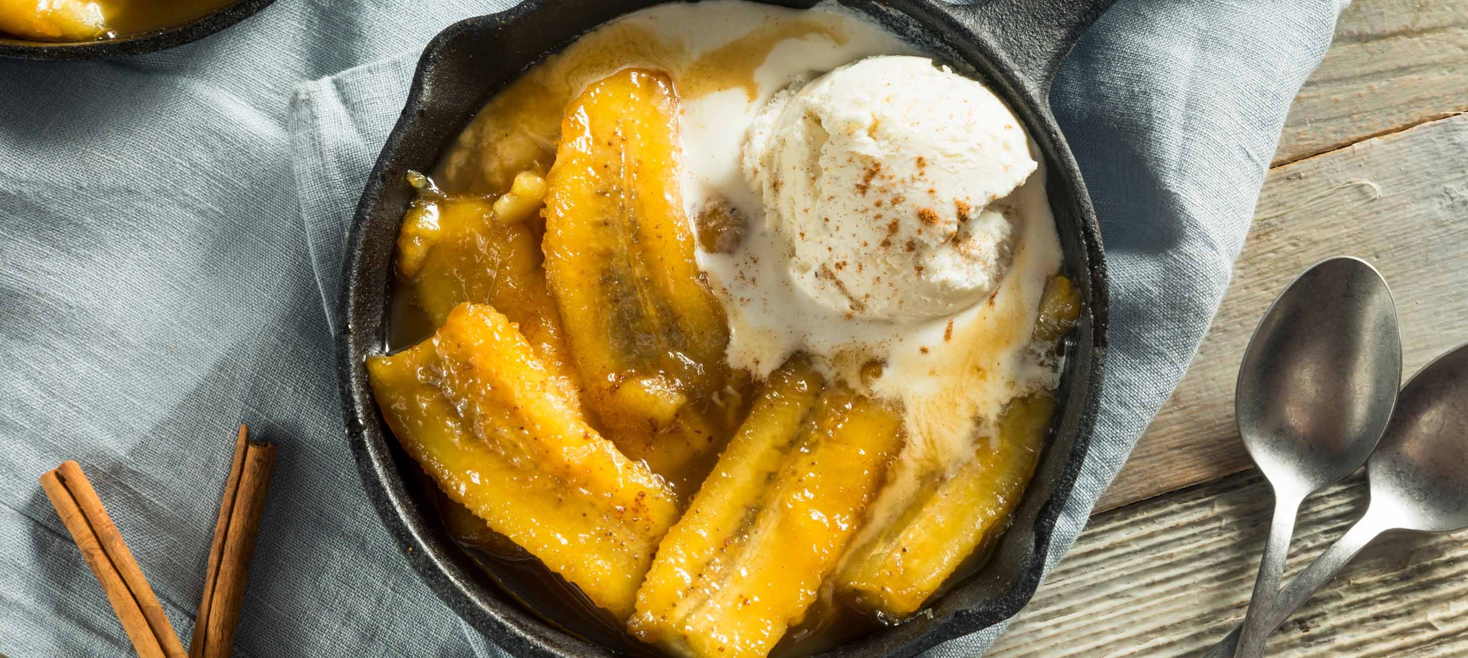 - 4Tedd a banánt egy edénybe, majd öntsd rá a cukros limelevet és kend meg a fahéjas vajjal. Fedd le az edényt és tedd előmelegített sütőbe 10 percre. A kész banánt vágd kisebb darabokra és keverd össze a serpenyőben maradt limelével.