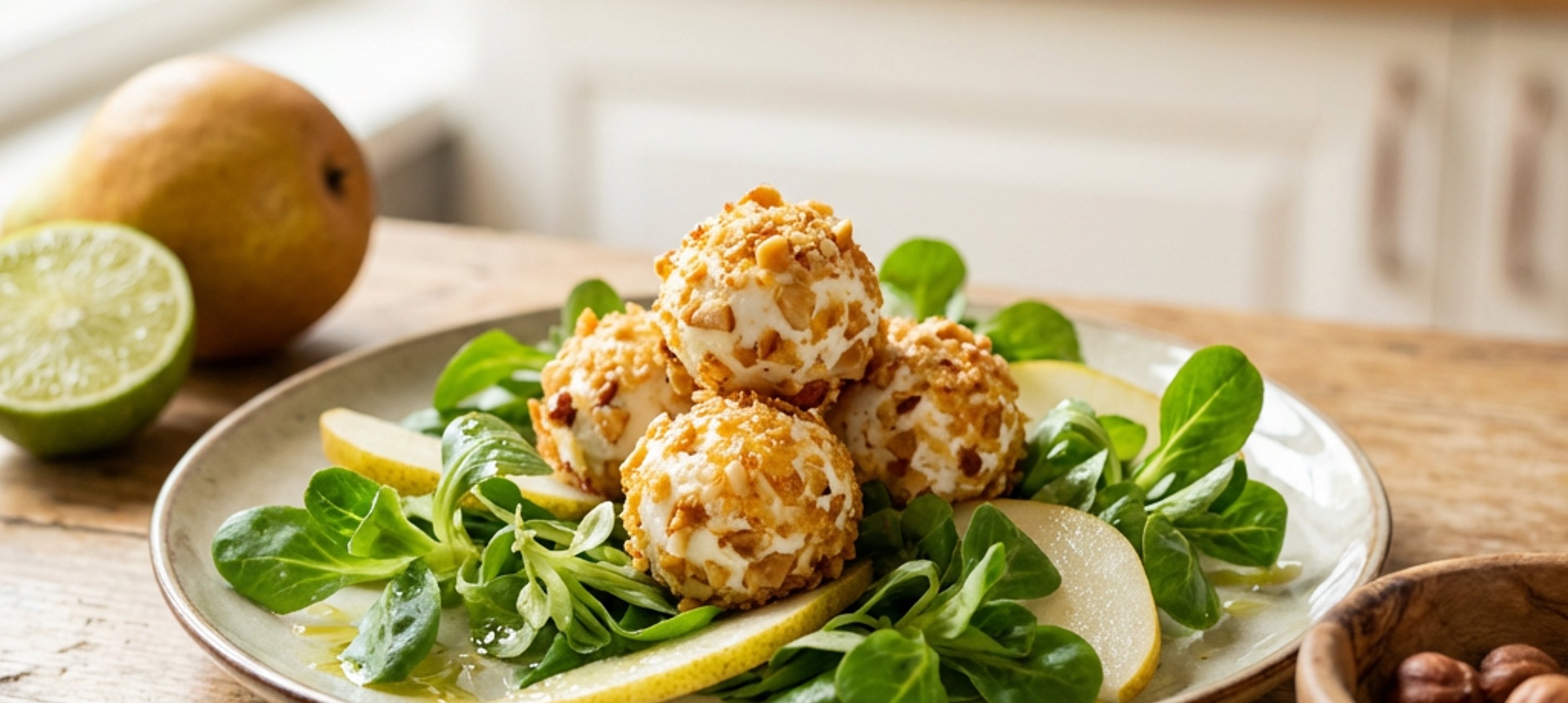 - 3A kecskesajtból formázzunk golyókat, ha jól lehűtjük, könnyebb dolgunk lesz.
