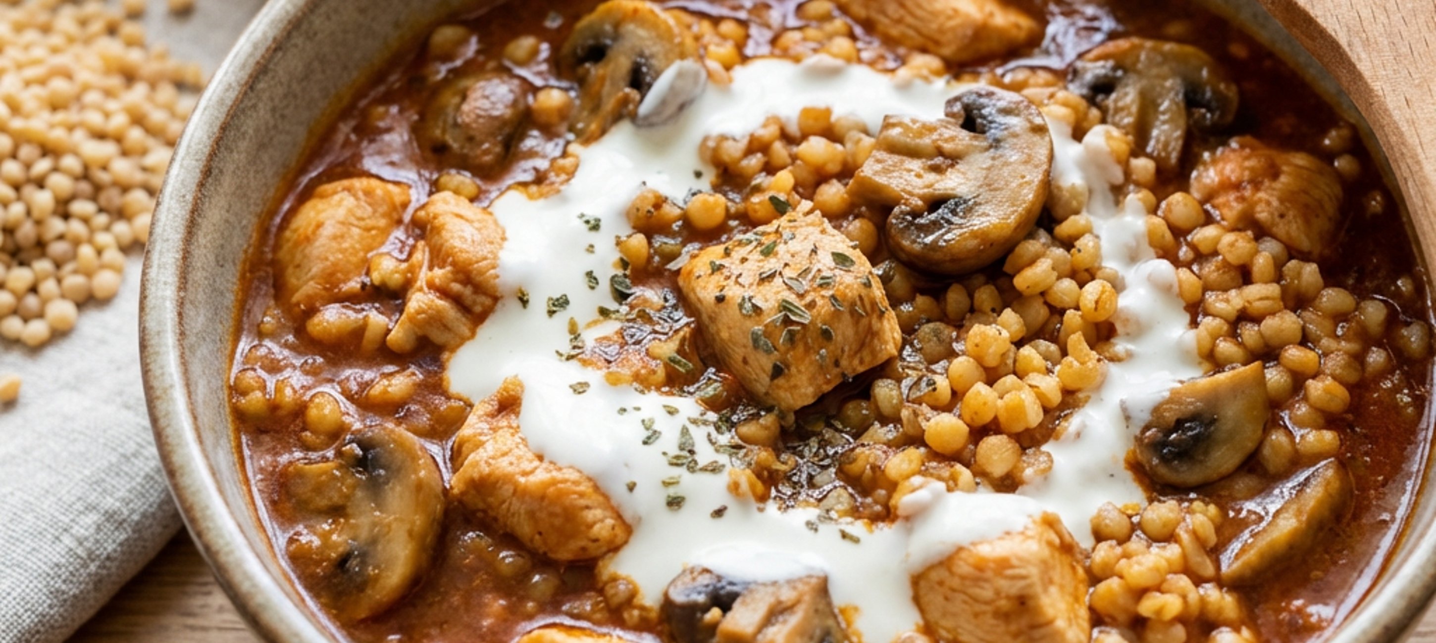 - 4Mikor a víz teljesen elpárolgott, megszórom a fűszerpaprikával, hagyom, hogy feloldódjon a zsiradékban, hozzáadom a kockára vágott csirkemellet, pár percig együtt pirítom - de ne nagy hőmérsékleten, nehogy megégjen a paprika, mert akkor keserű lesz -, majd hozzáadom az előzőleg félretett tarhonyát, gombát, szalonnát, alaposan összekeverem, felöntöm annyi vízzel, ami éppen hogy ellepi és alacsony hőmérsékleten, fedő alatt készre főzöm.