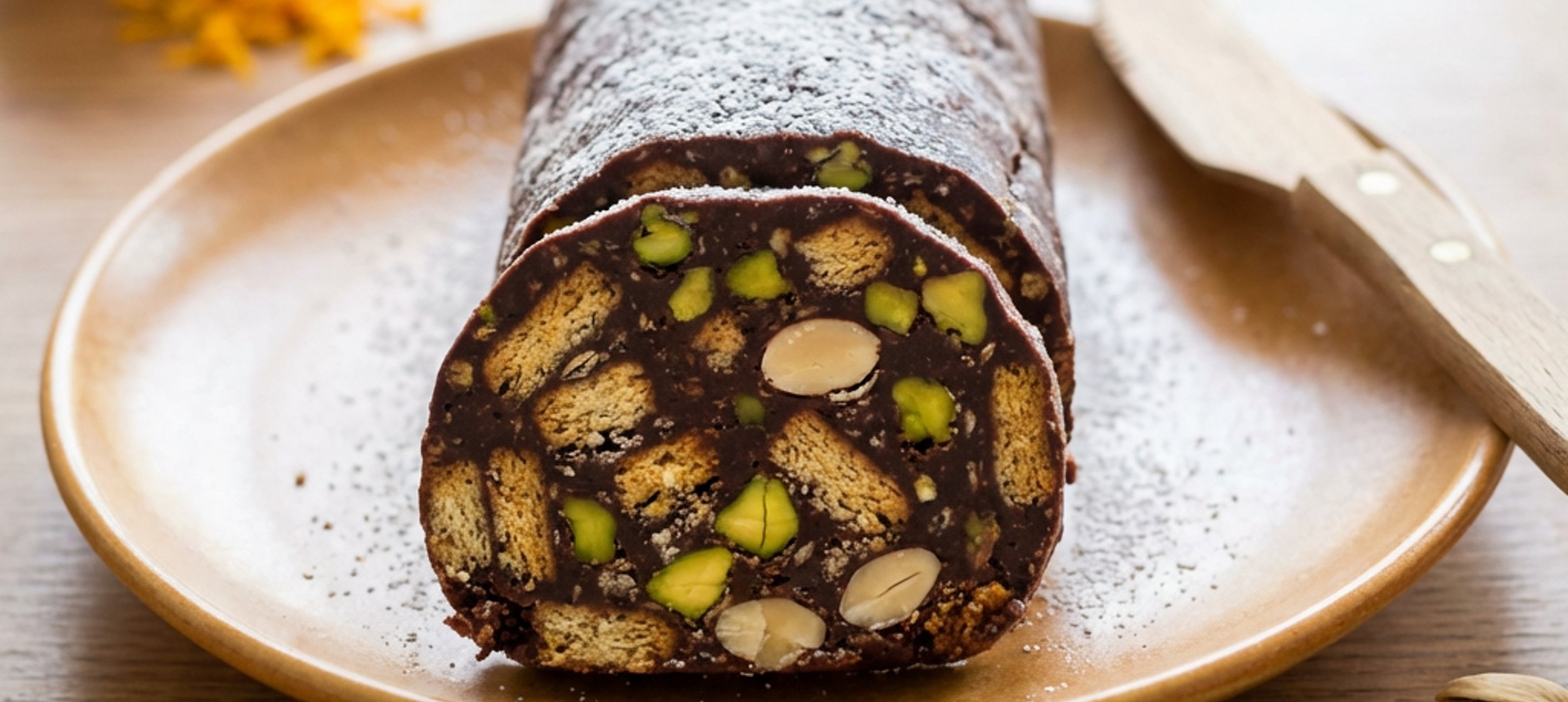 - 4Szeletelés előtt megszórom az egész rudat porcukorral.