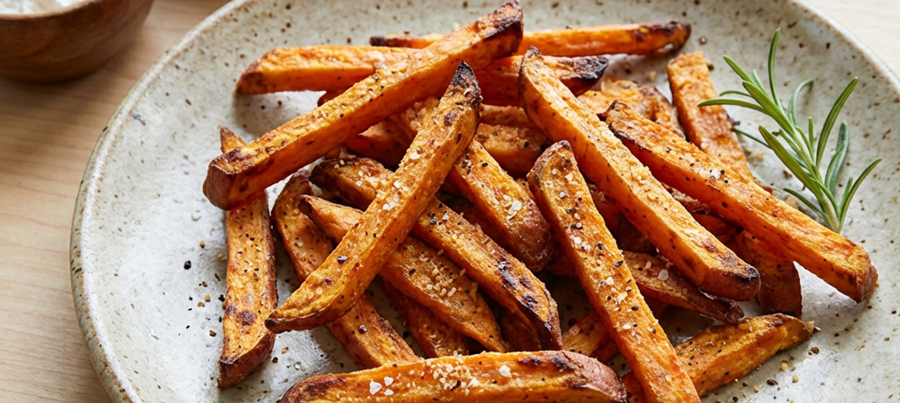 - 1Az édesburgonyát 0,5 cm x 0,5 cm-es hasábokra vágjuk. Hideg vízbe áztatjuk fél órát, majd alaposan leitatjuk róla a vizet.