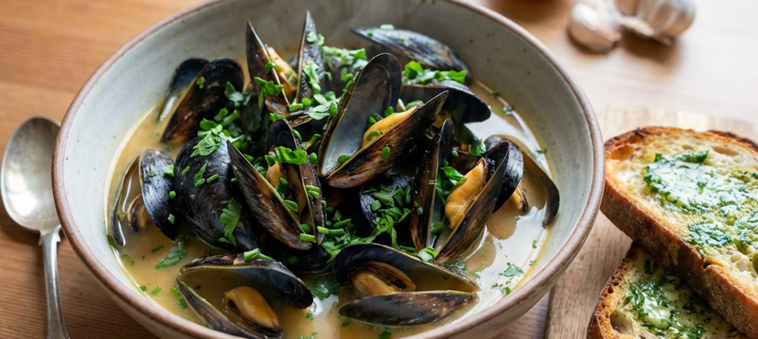 - 7A megpárolt kagylót is ízesítsük szükség szerint sóval, borssal, citromlével és adjunk hozzá egy jó darab fűszervajat is.