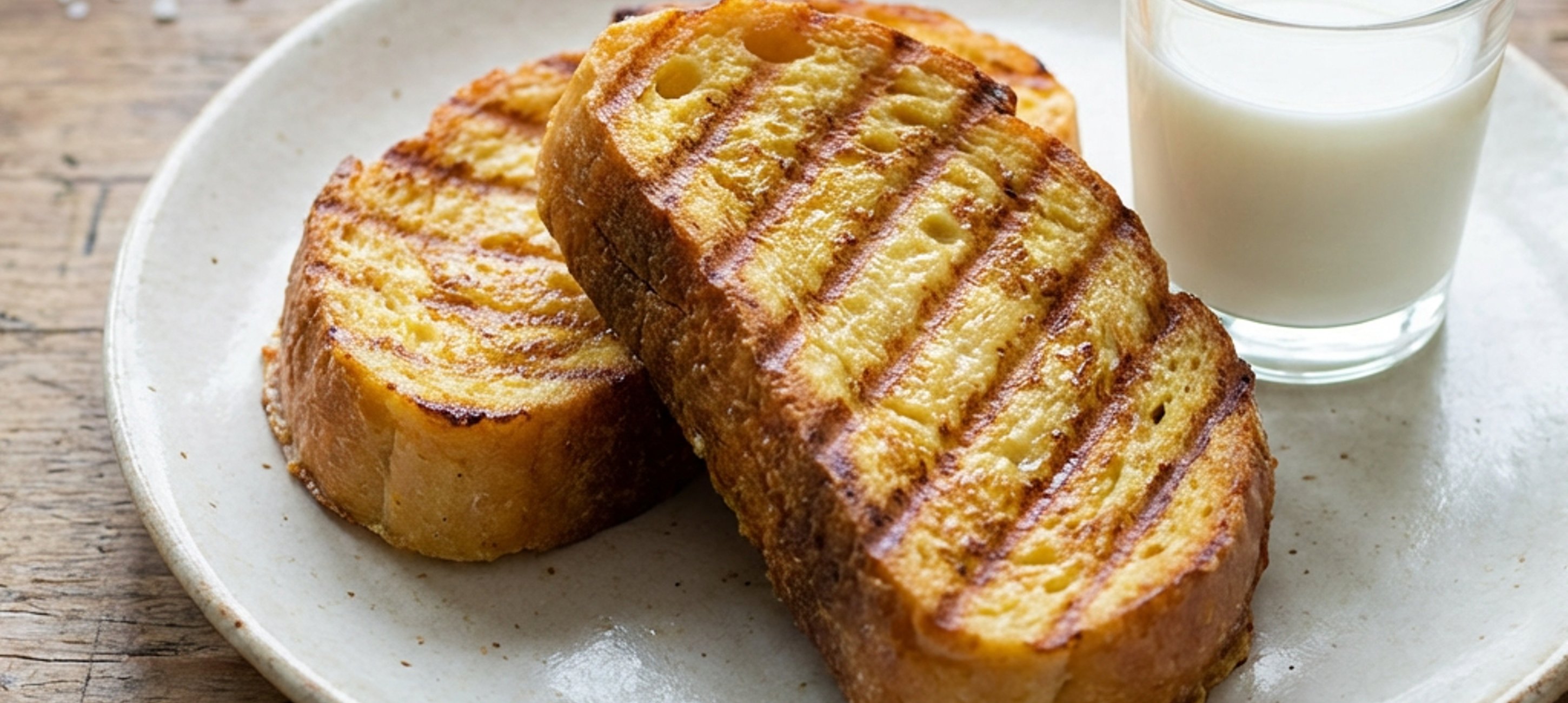 - 2A szendvicssütőt felmelegítjük, megkenjük olajjal, majd a tojásos masszába forgatott kenyérszeleteket rátesszük, és kb 6-8 perc alatt készre sütjük.